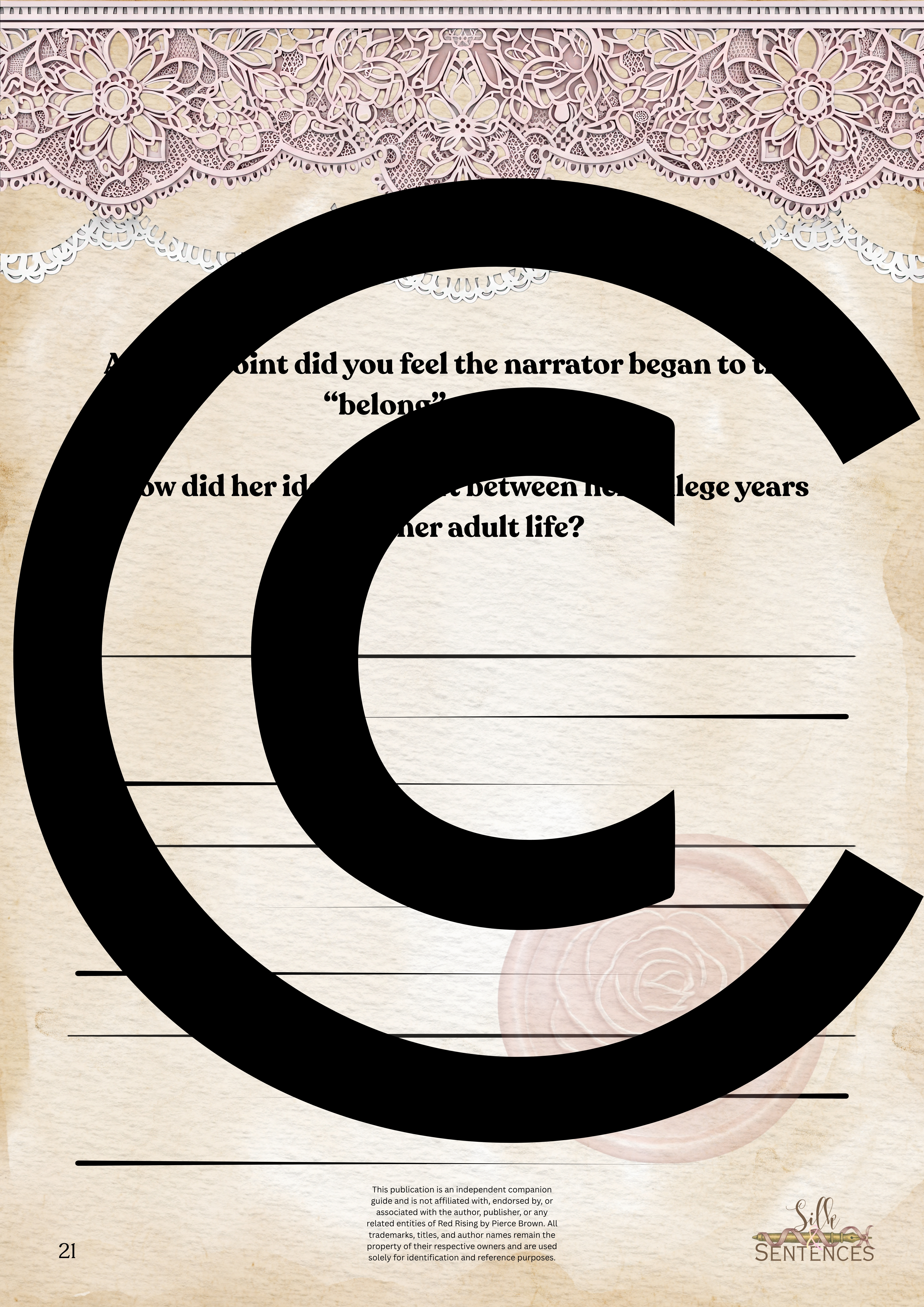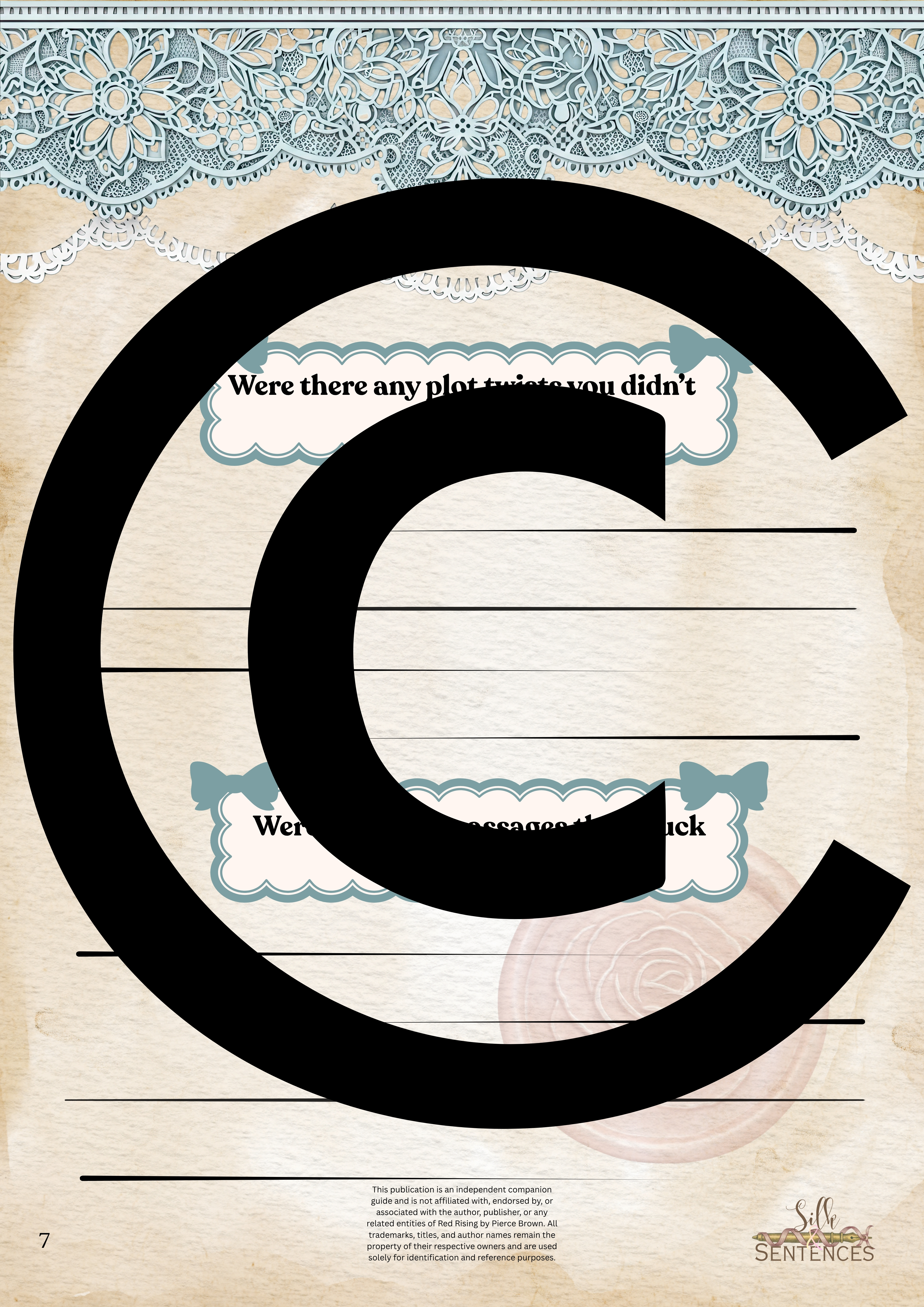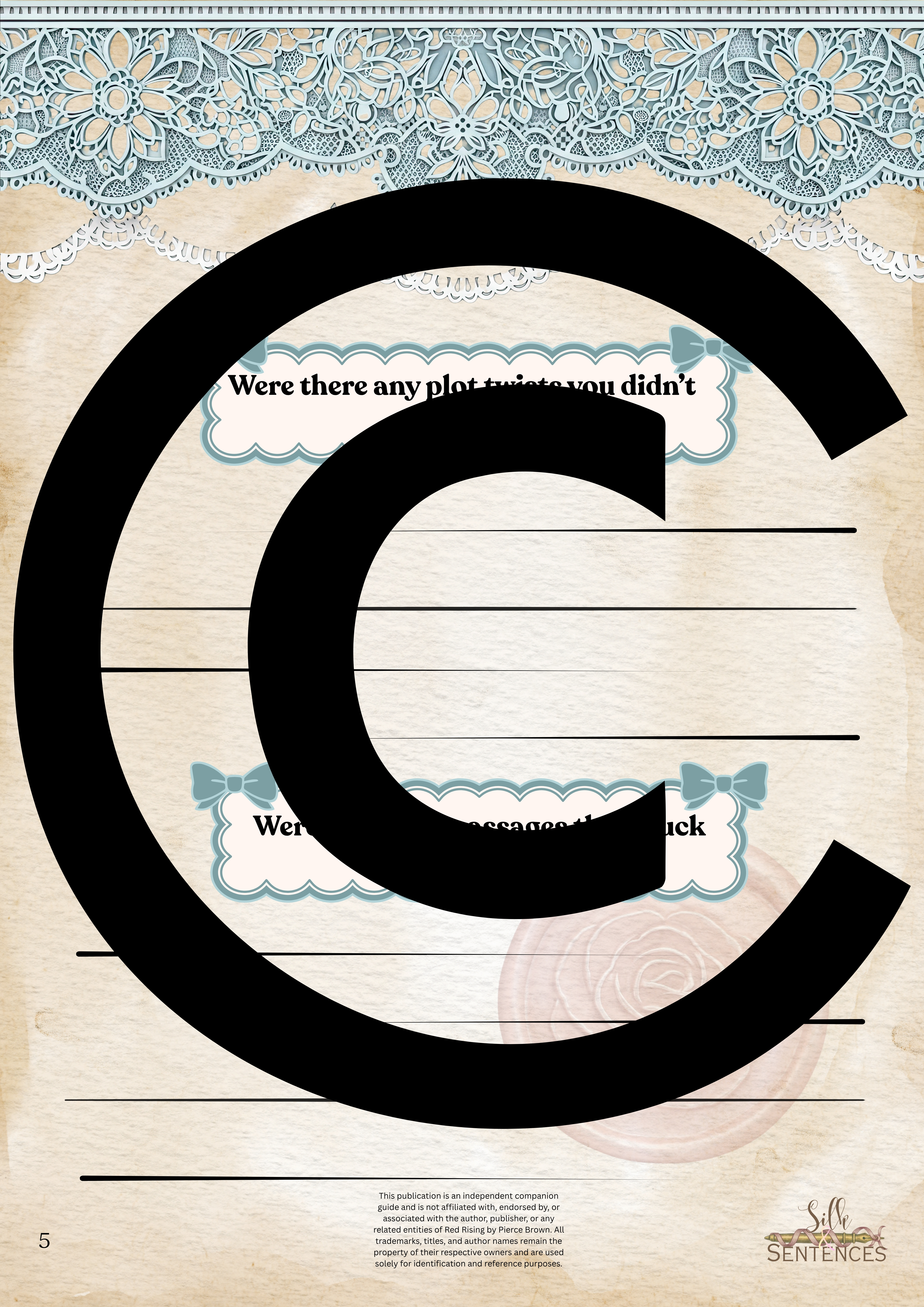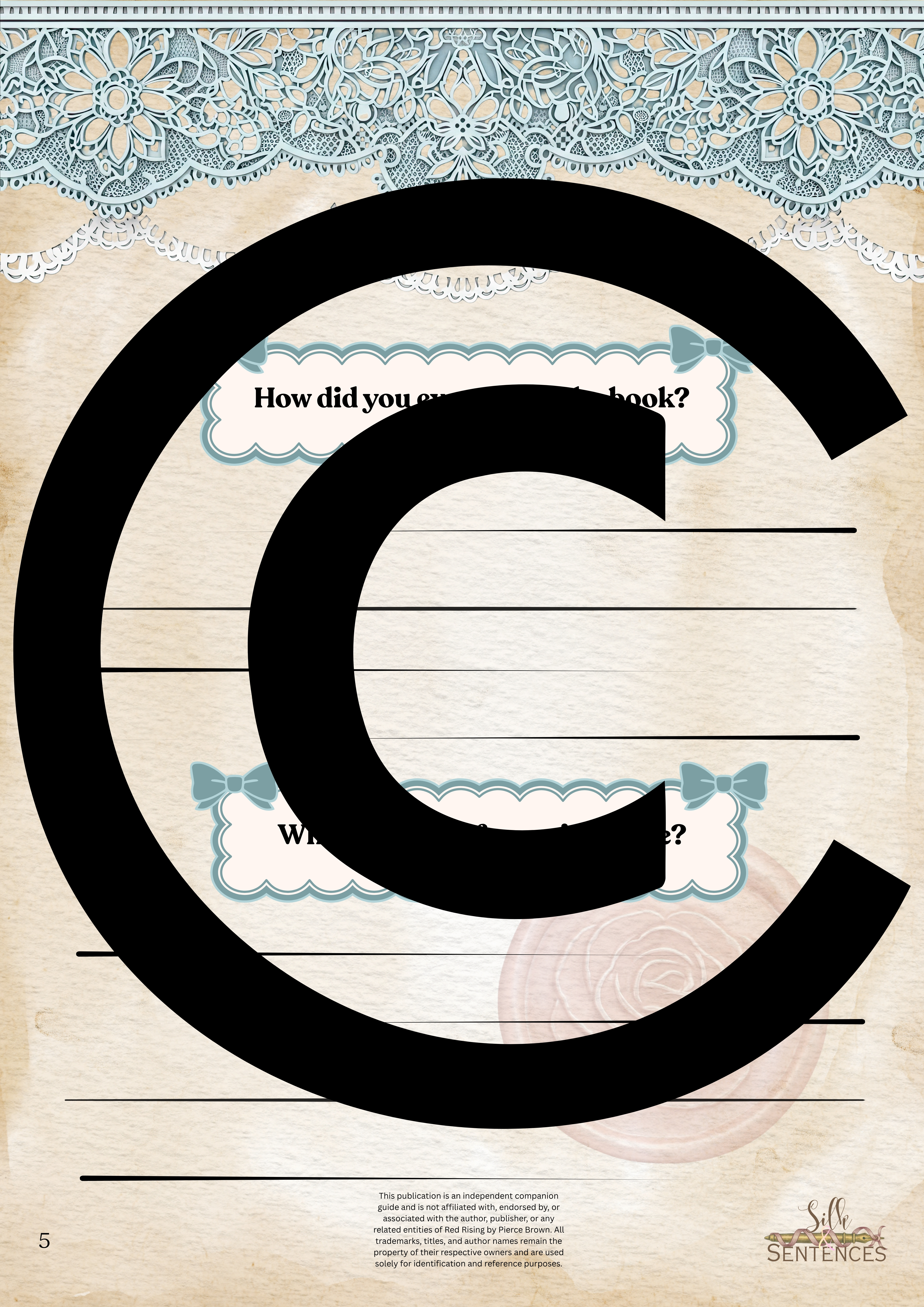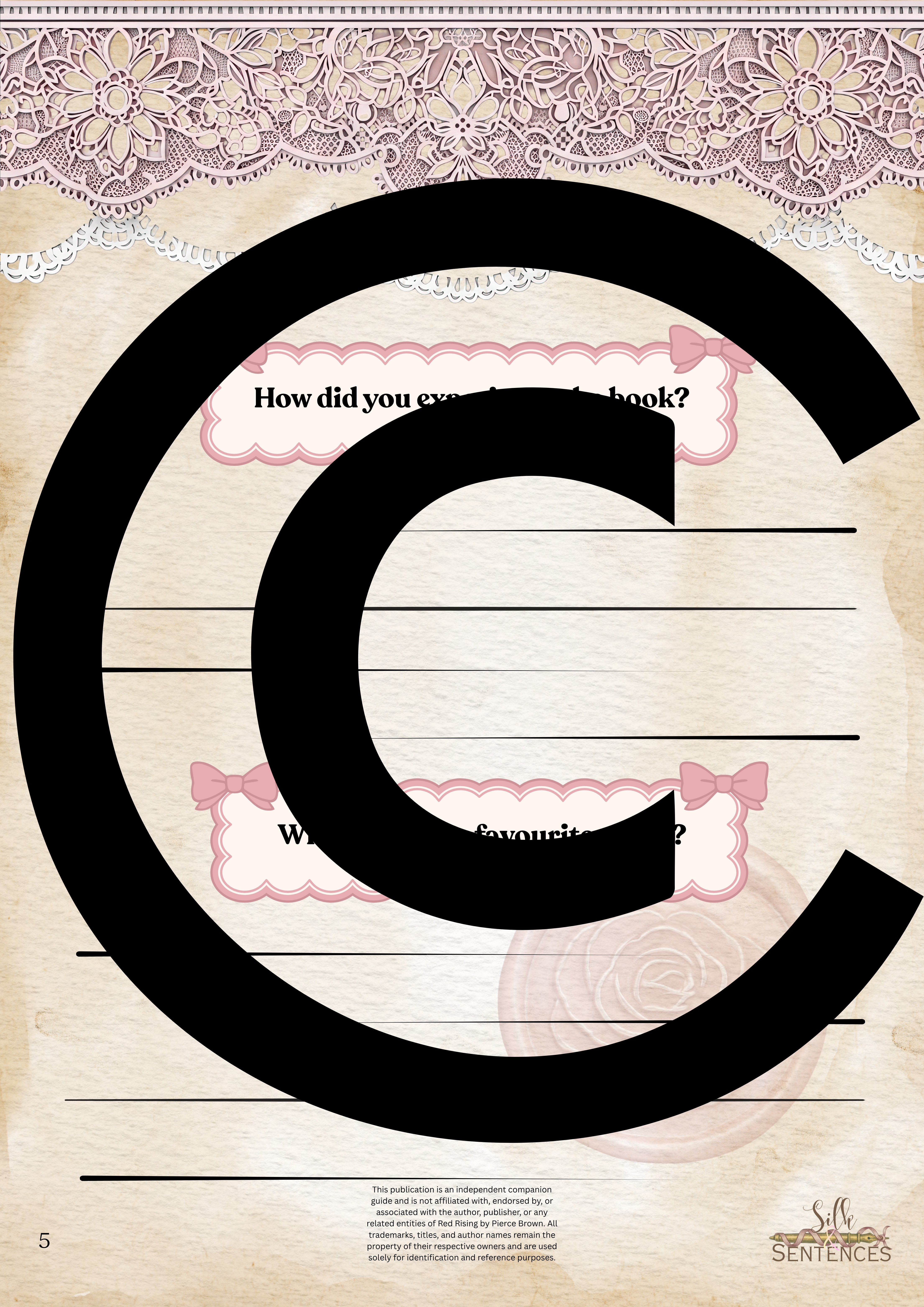 Available for individual download, this beautifully designed and paintakingly developed reading companion exists primarily to support you through reading it's corresponding book. With a plethora of reflection questions, adequate space for journalling and in-depth insights into key themes and characters, you will never read the same way again.