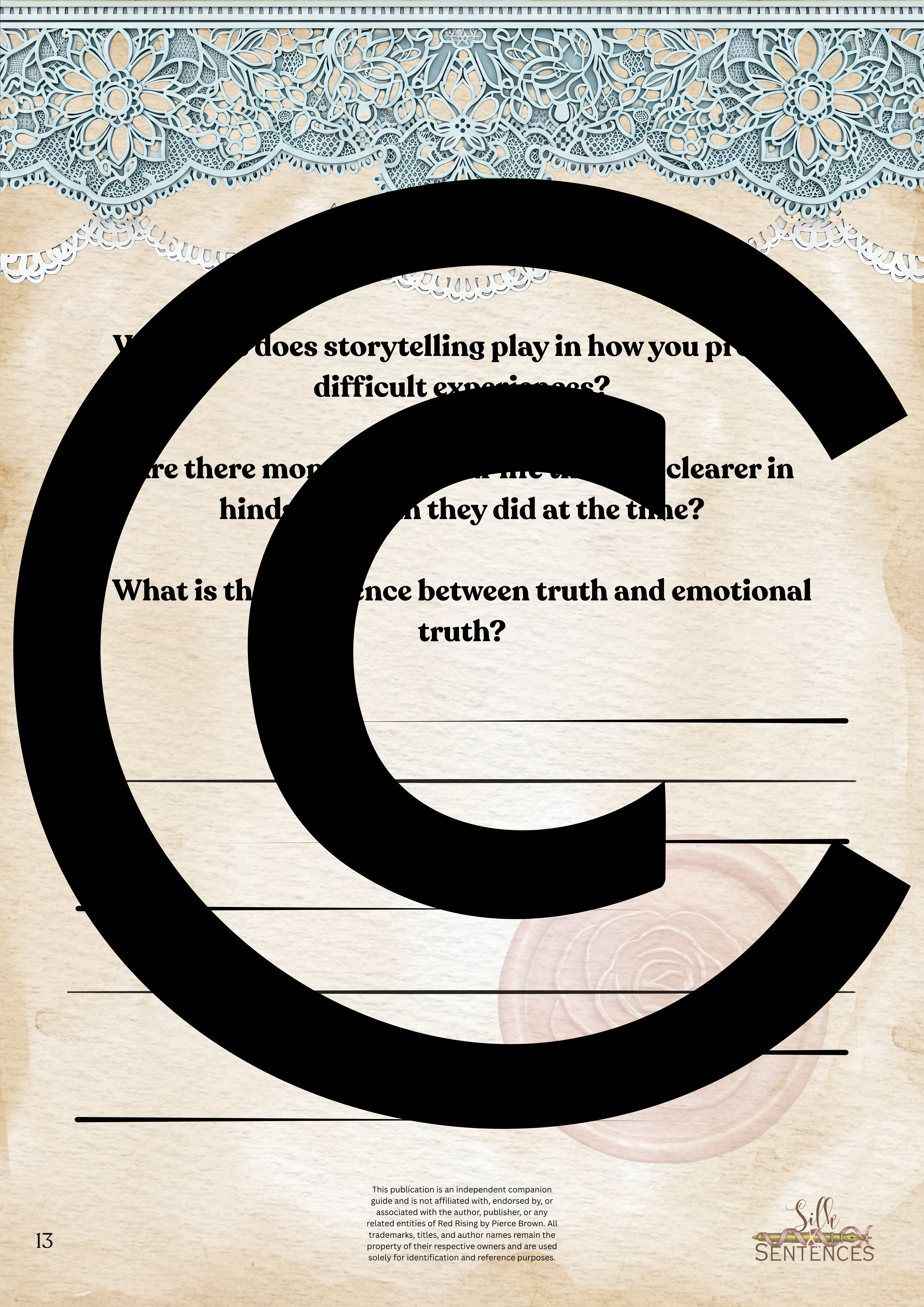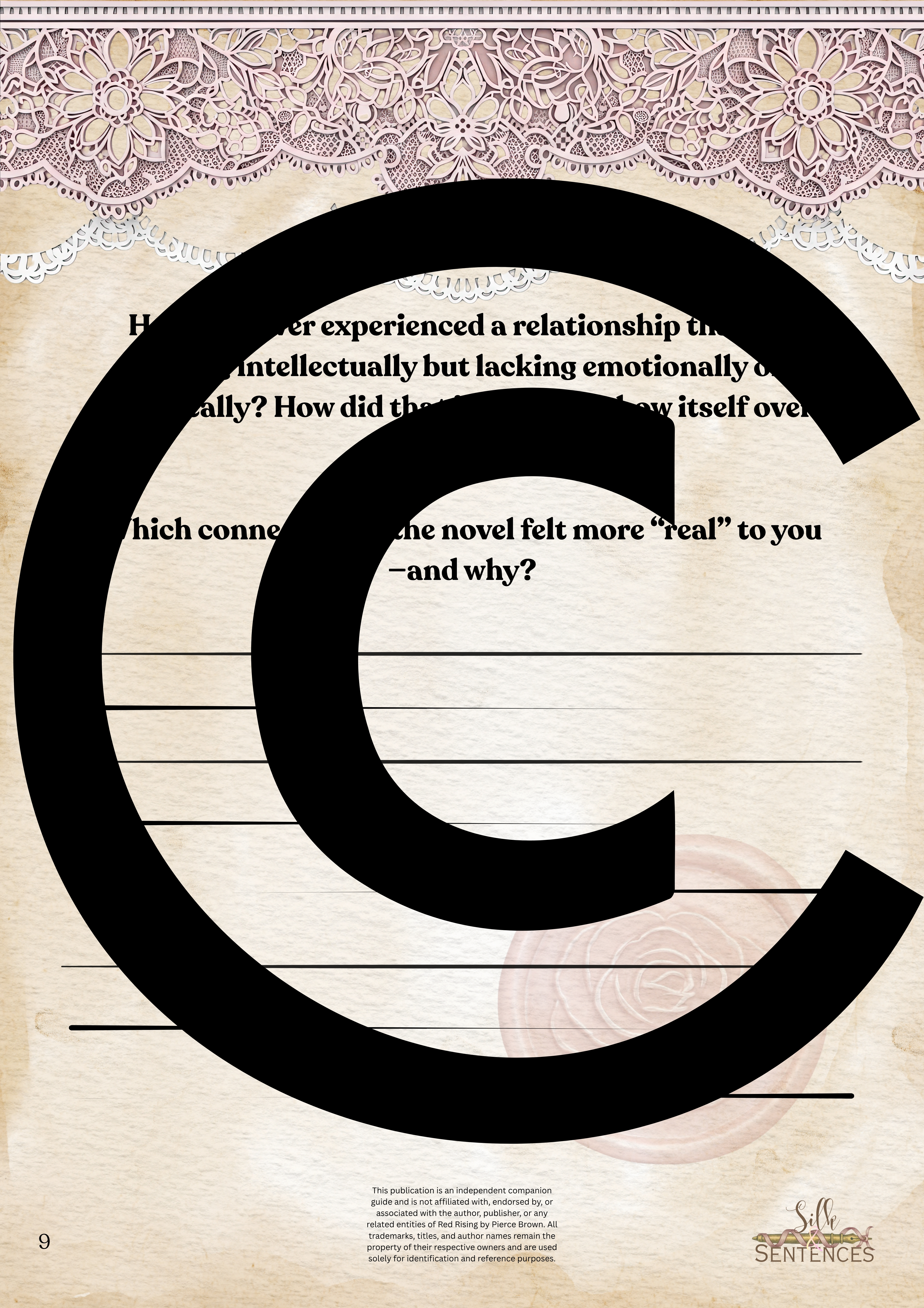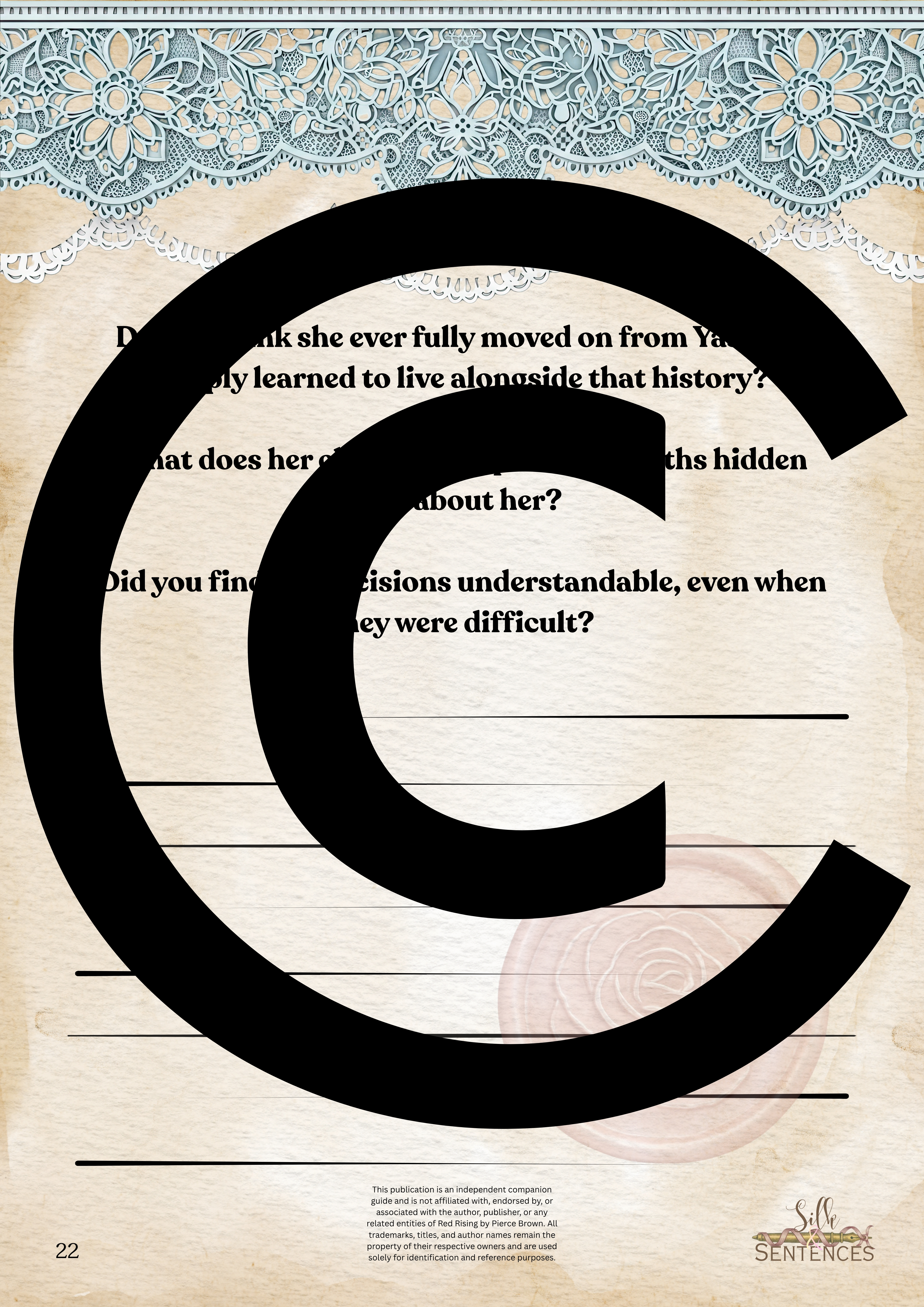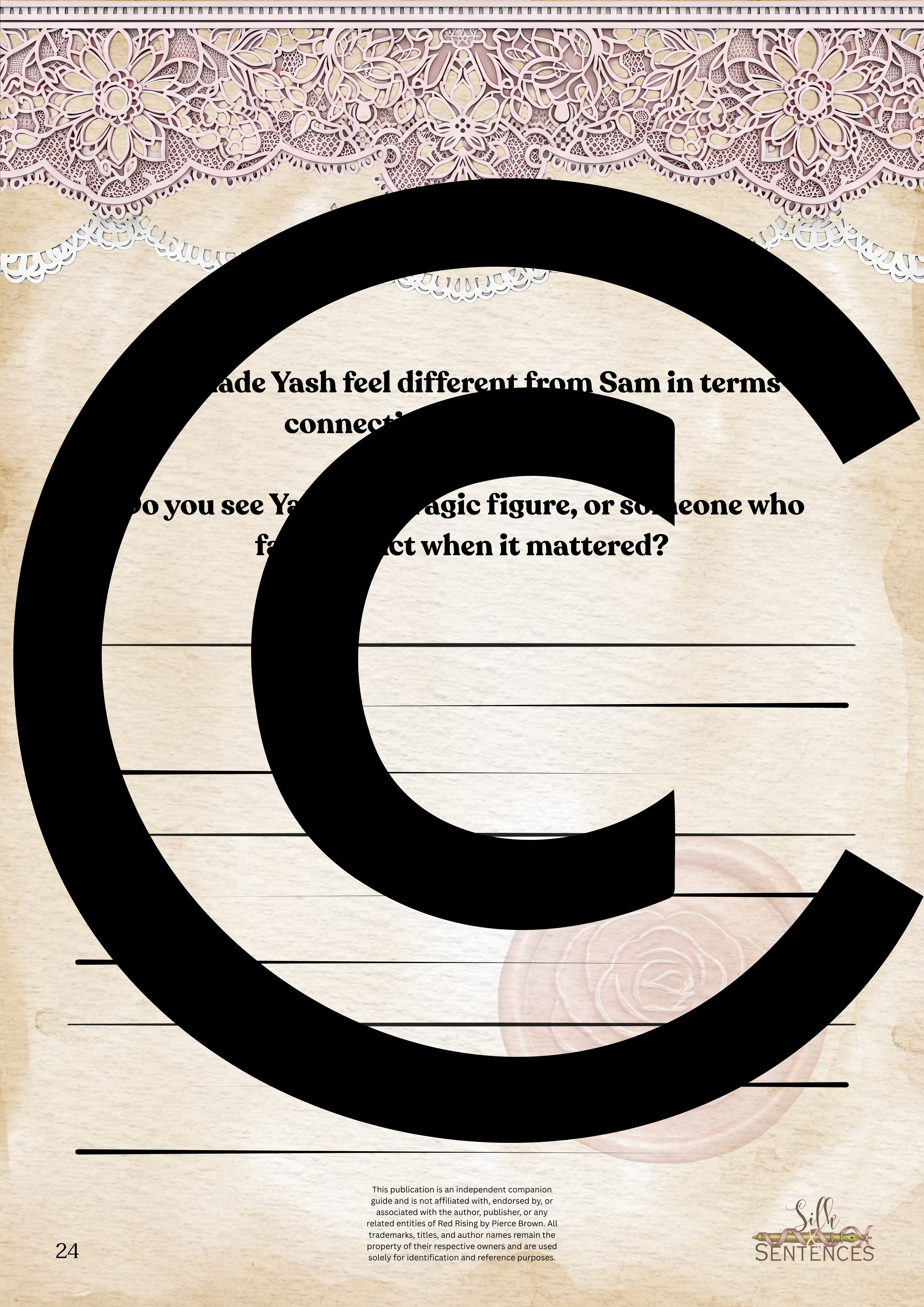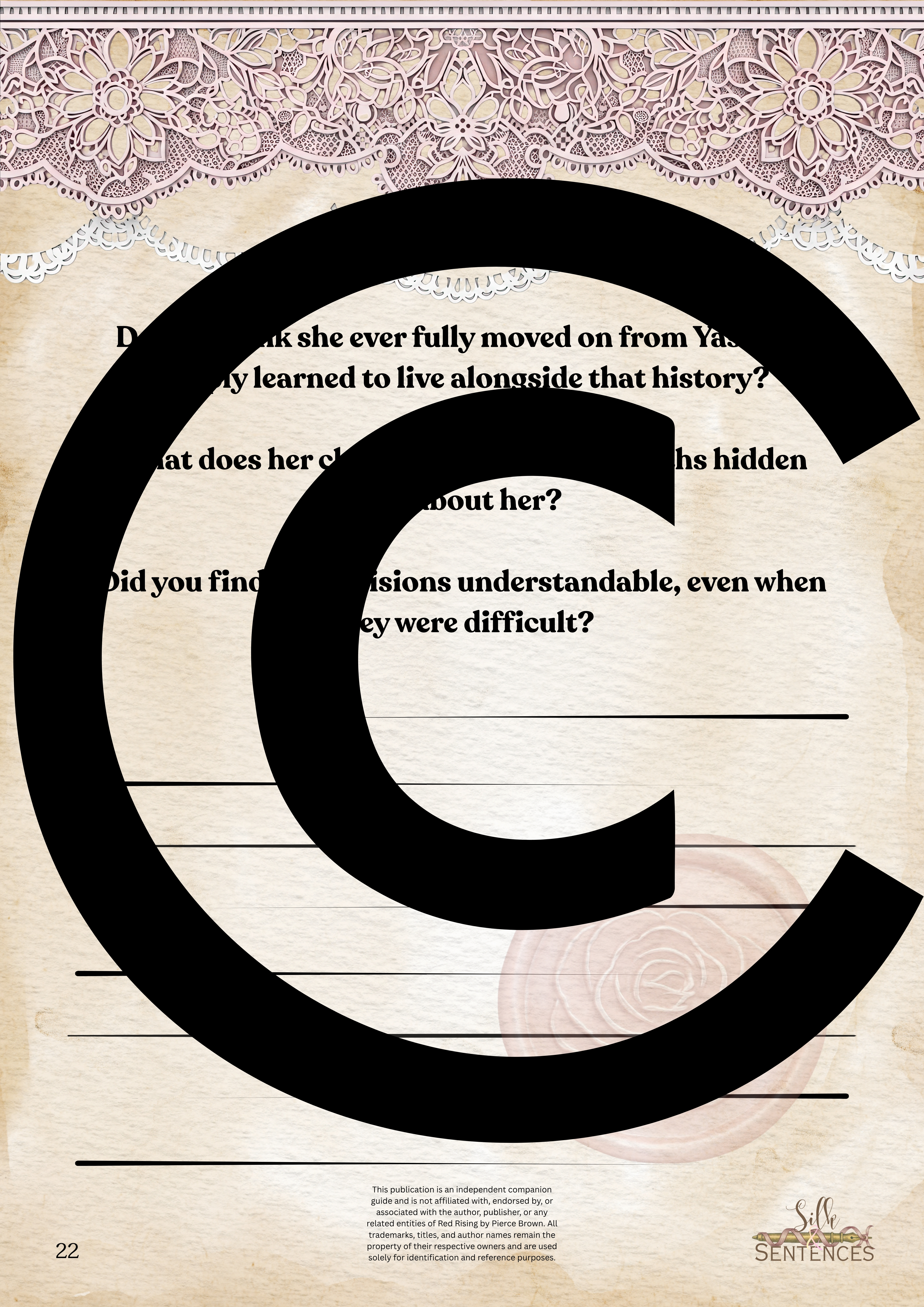 Available for individual download, this beautifully designed and paintakingly developed reading companion exists primarily to support you through reading it's corresponding book. With a plethora of reflection questions, adequate space for journalling and in-depth insights into key themes and characters, you will never read the same way again.