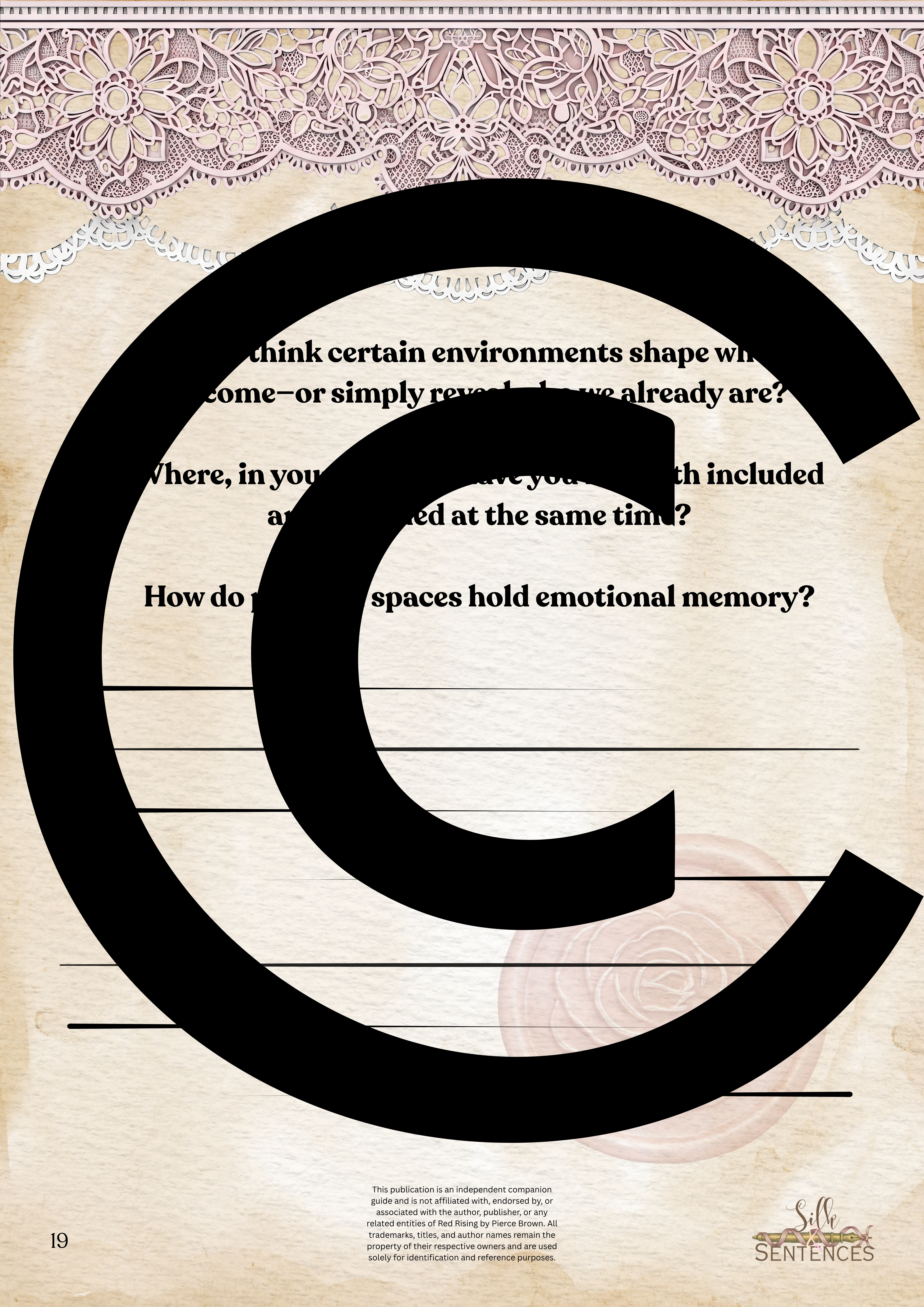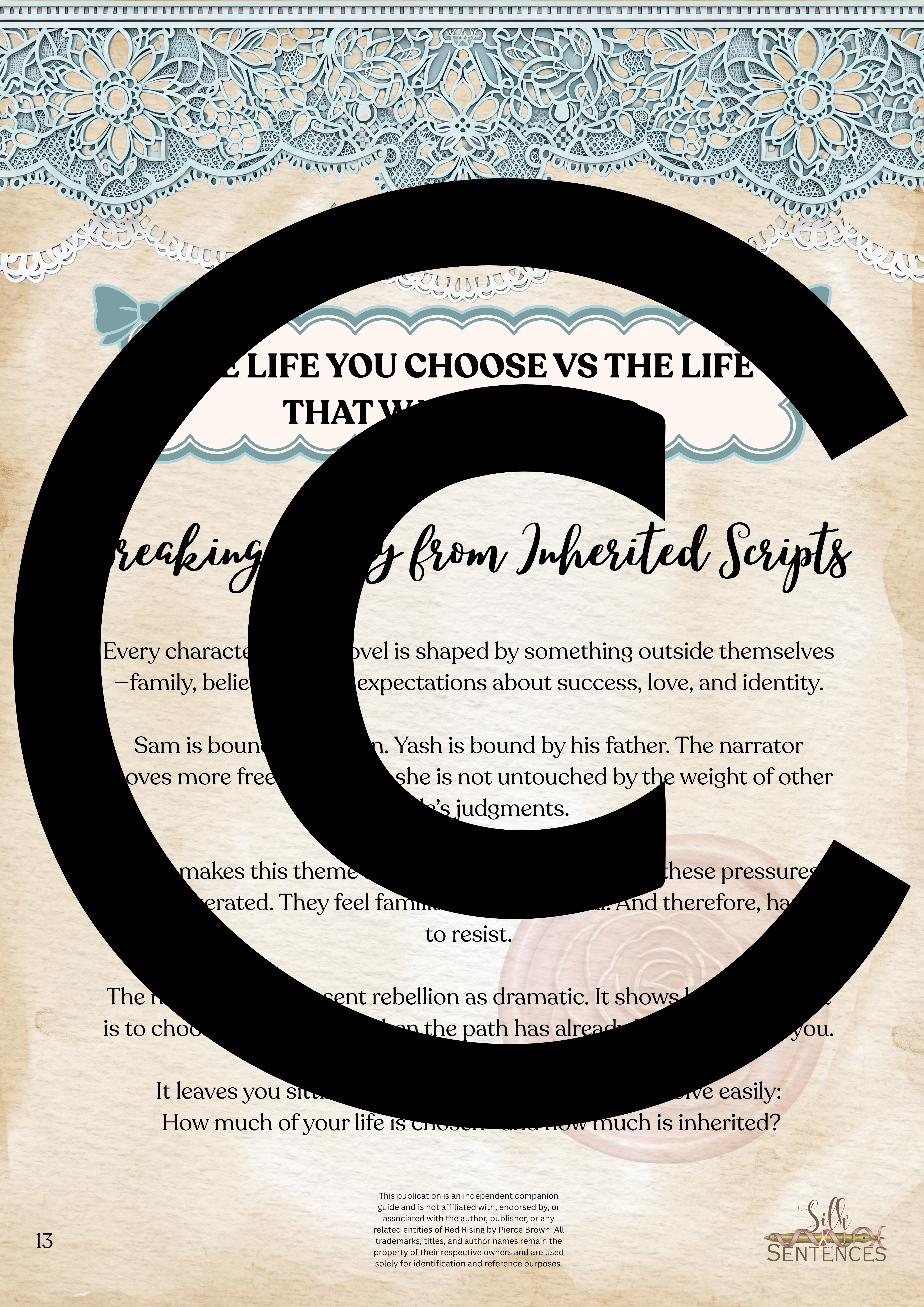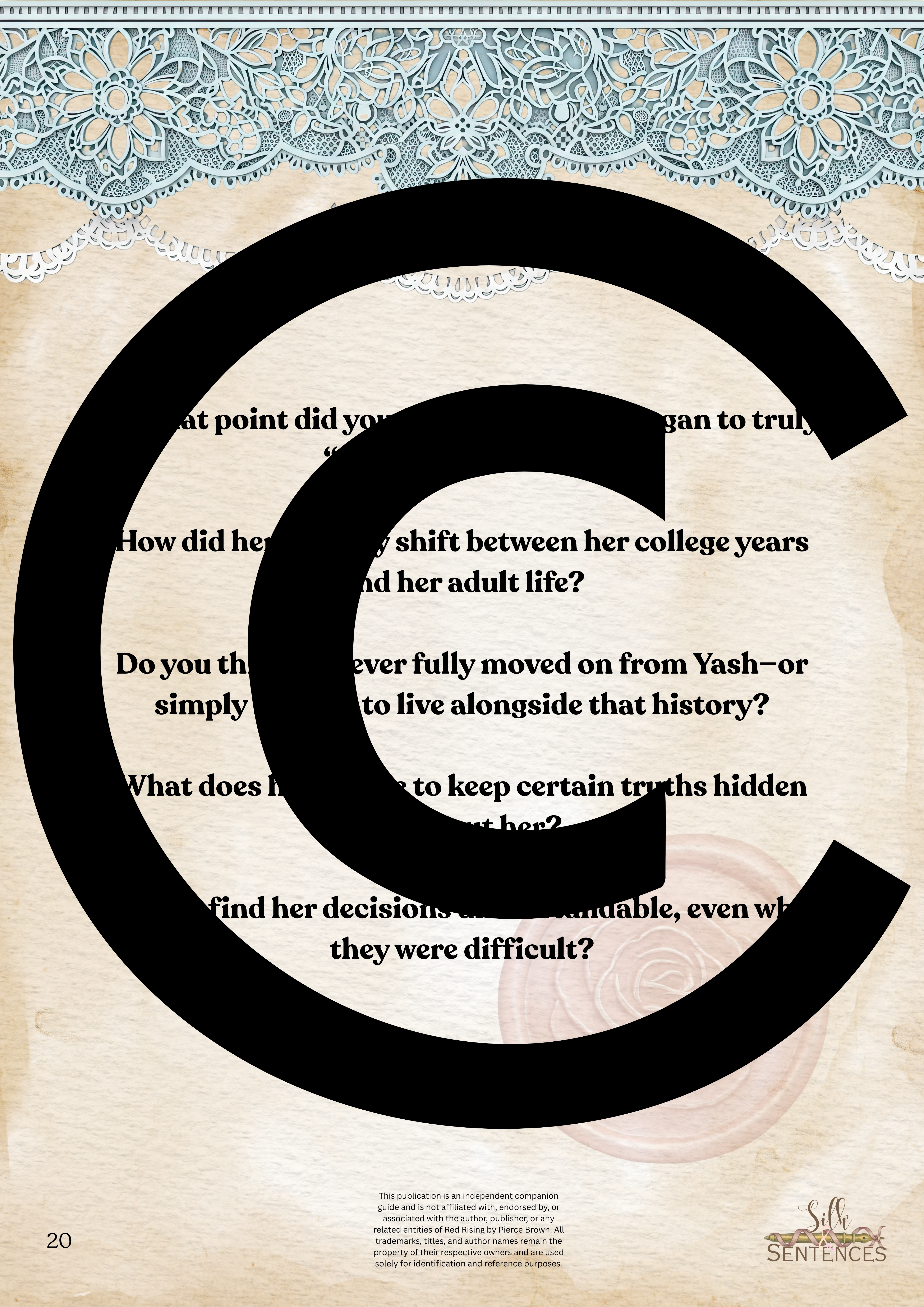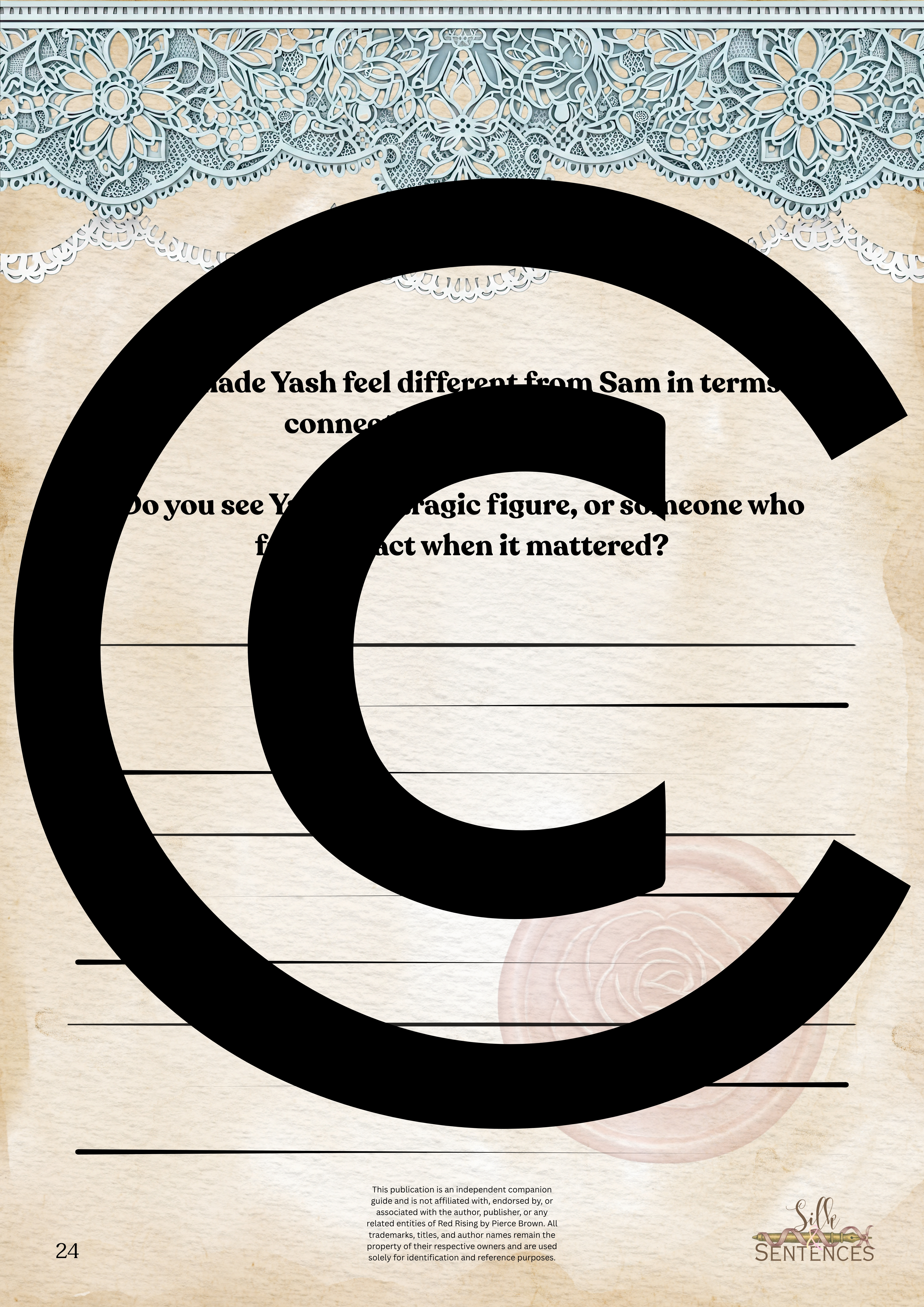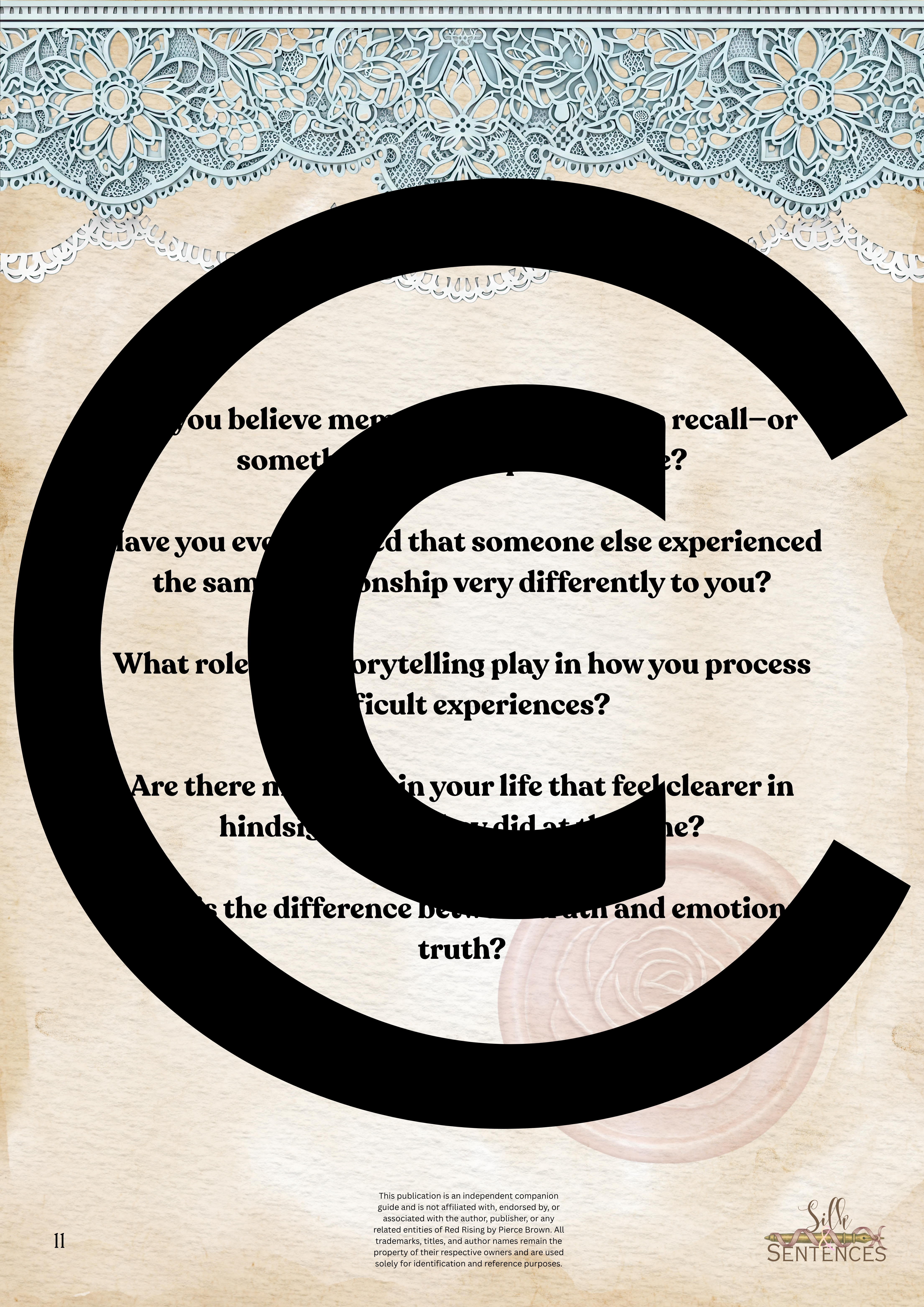 Available for individual download, this beautifully designed and paintakingly developed reading companion exists primarily to support you through reading it's corresponding book. With a plethora of reflection questions, adequate space for journalling and in-depth insights into key themes and characters, you will never read the same way again.