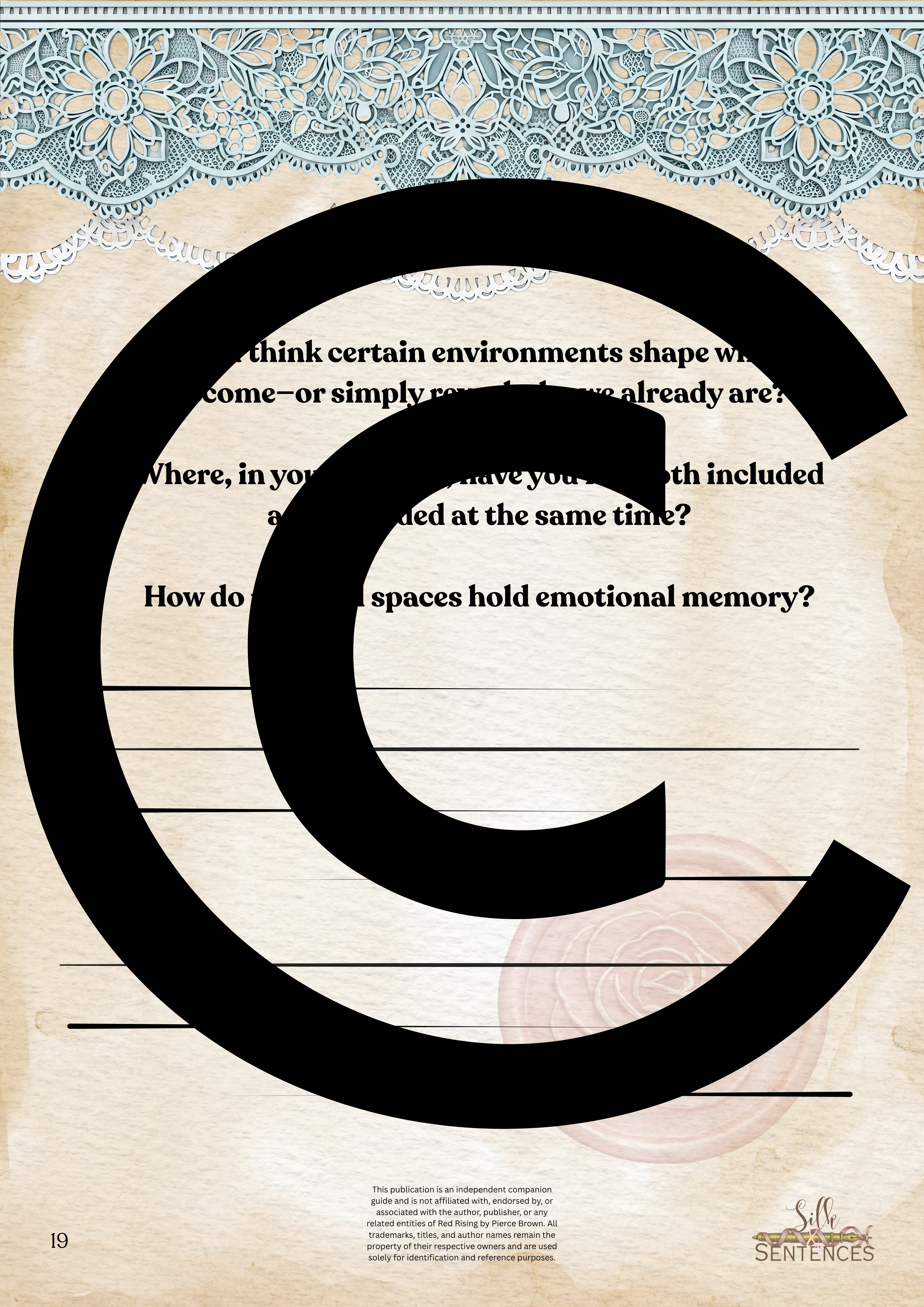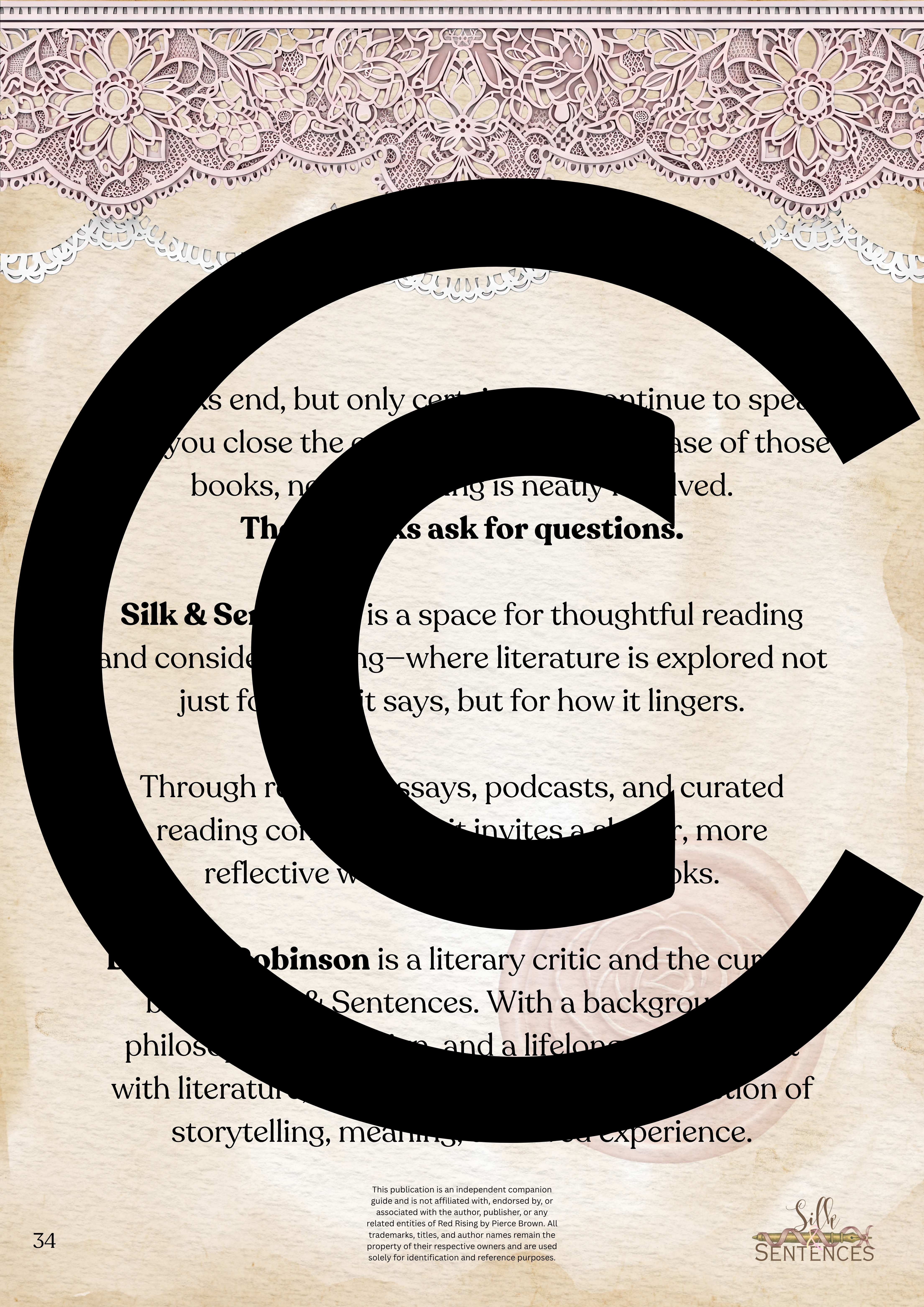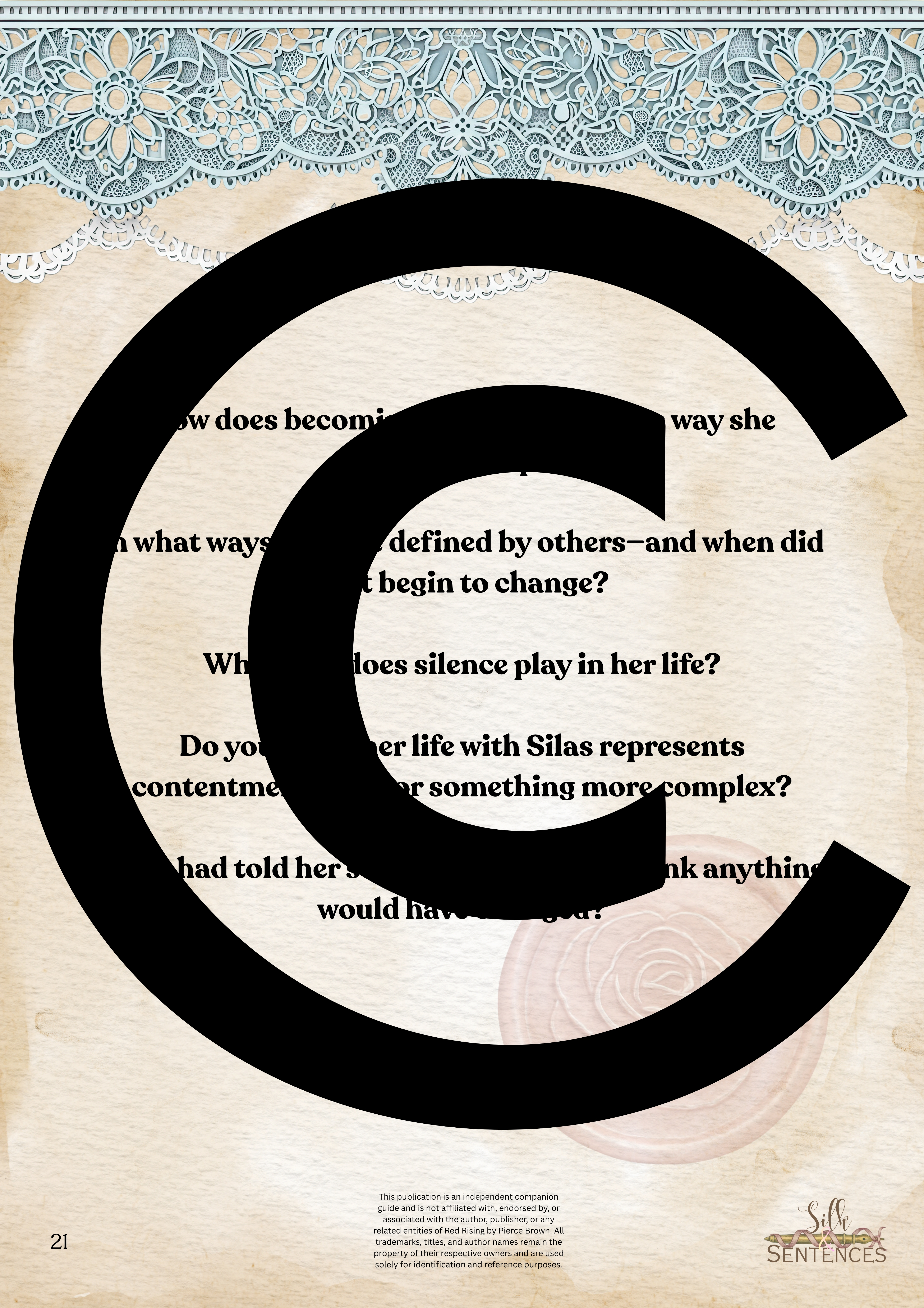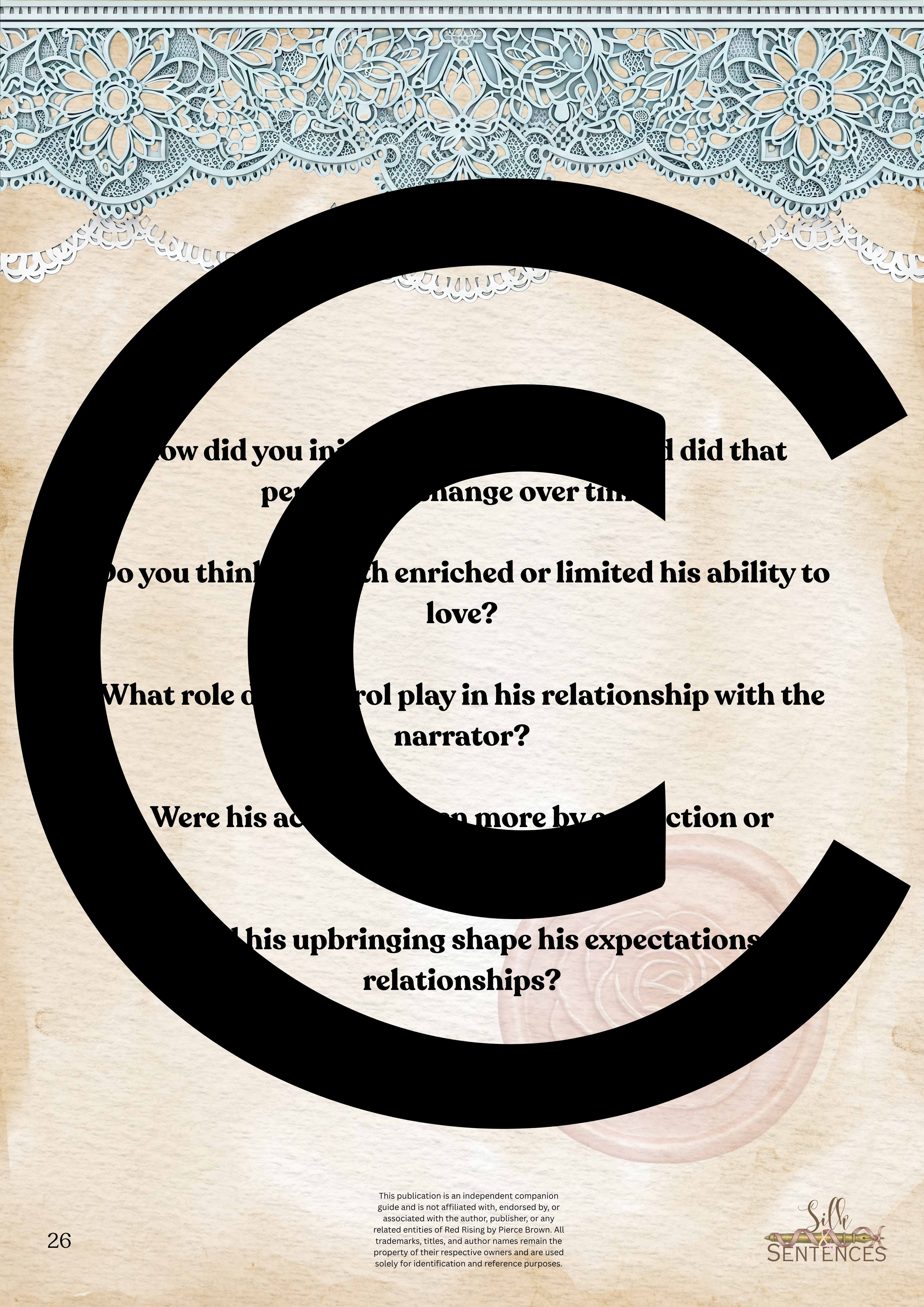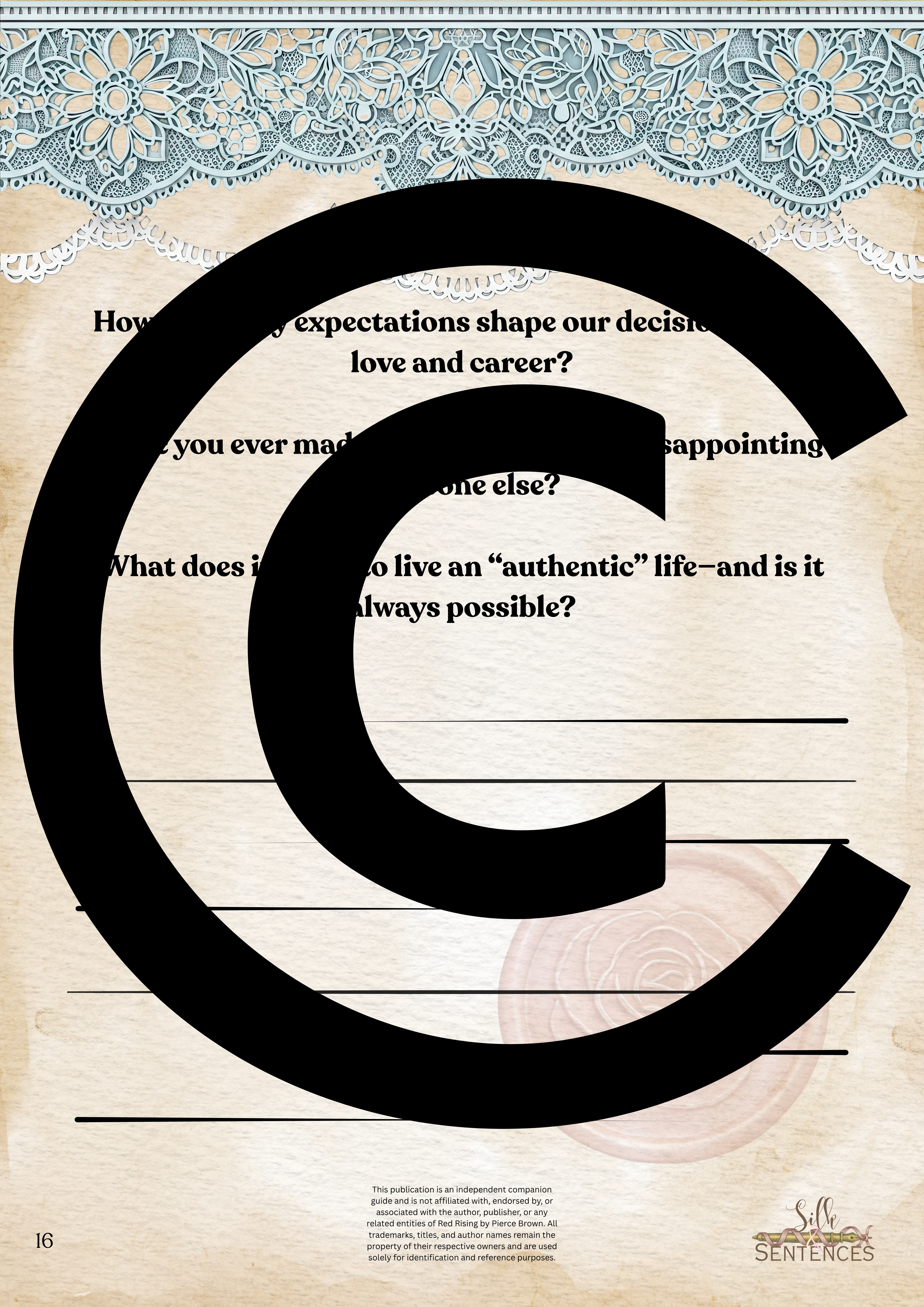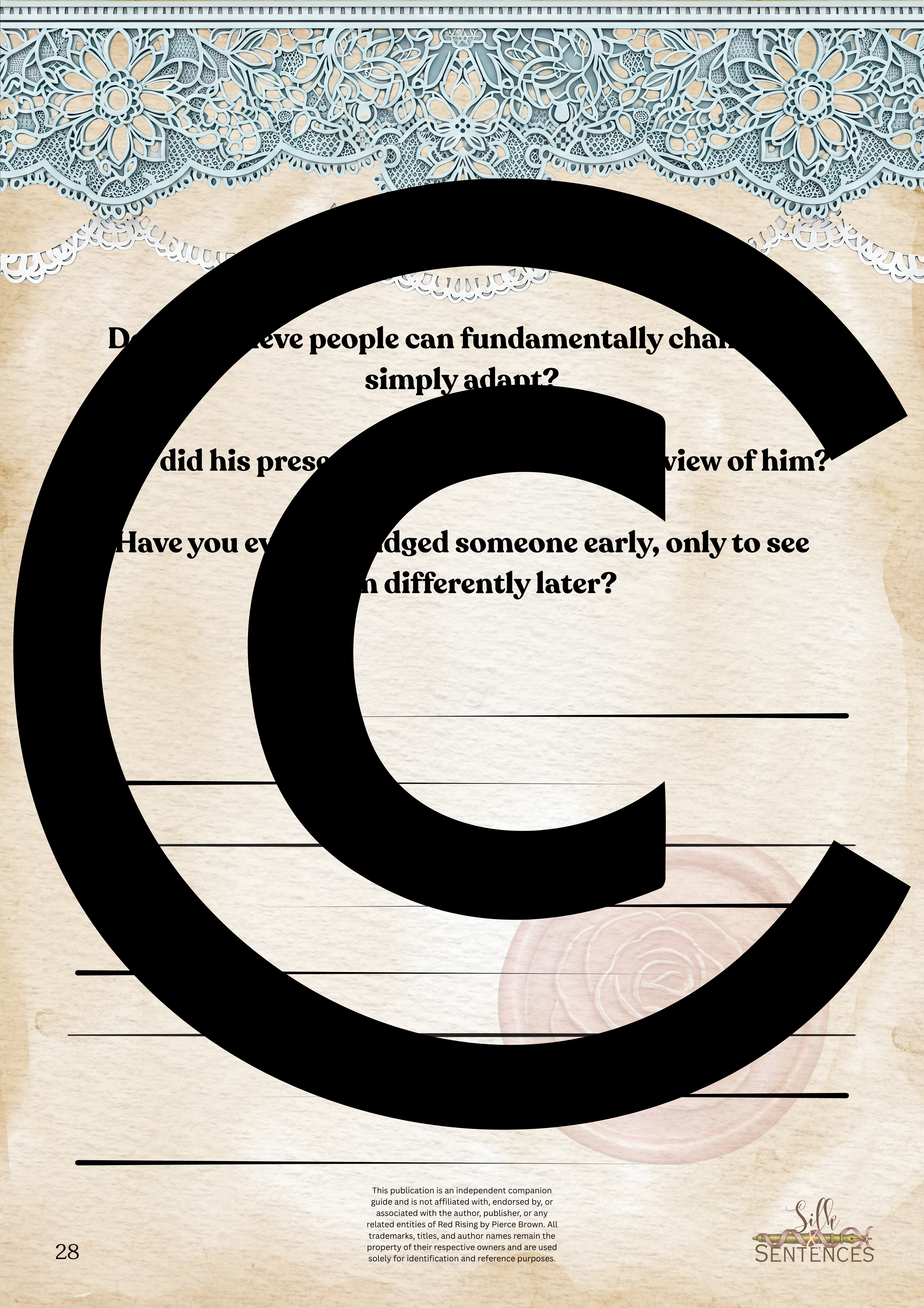 Available for individual download, this beautifully designed and paintakingly developed reading companion exists primarily to support you through reading it's corresponding book. With a plethora of reflection questions, adequate space for journalling and in-depth insights into key themes and characters, you will never read the same way again.