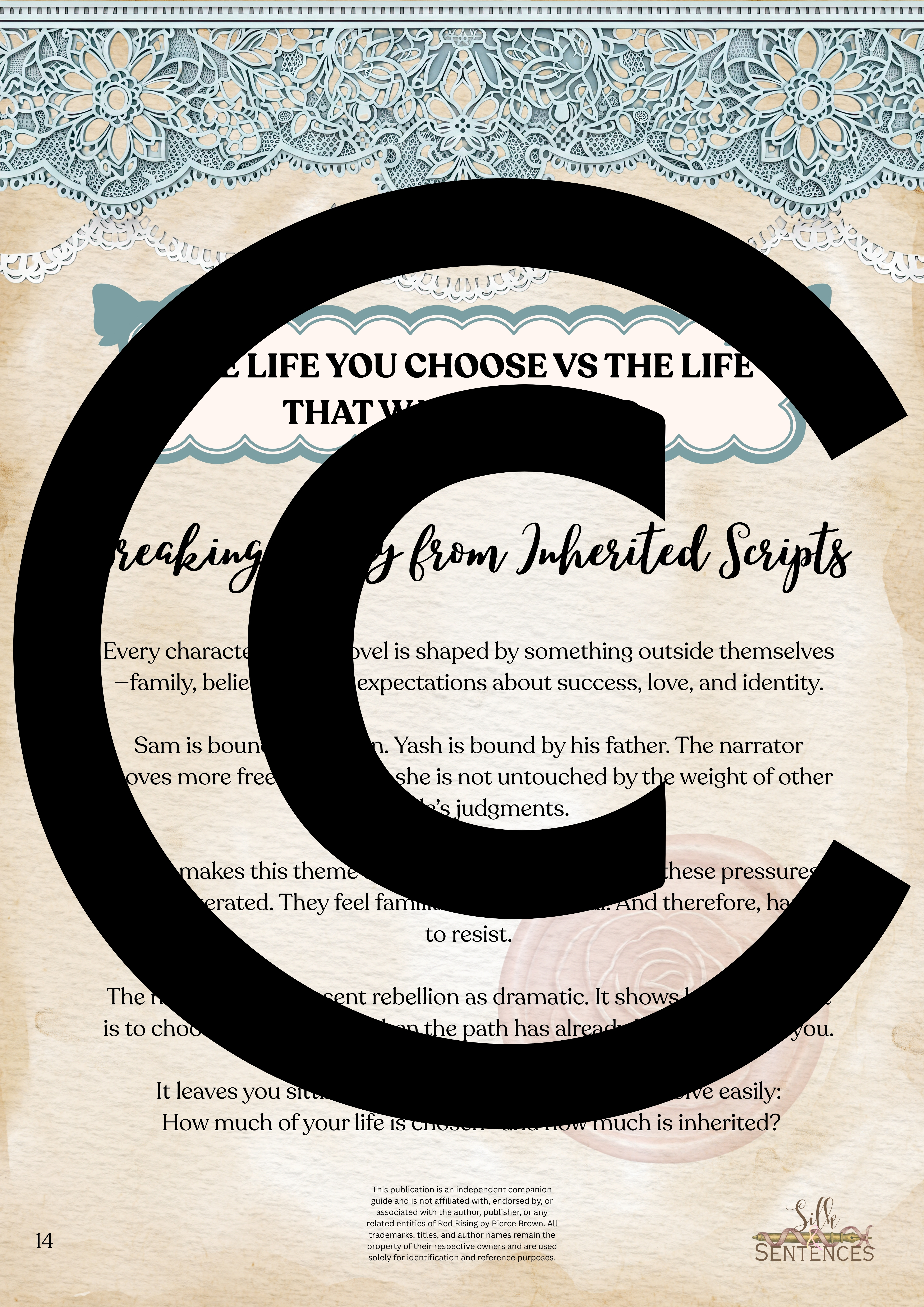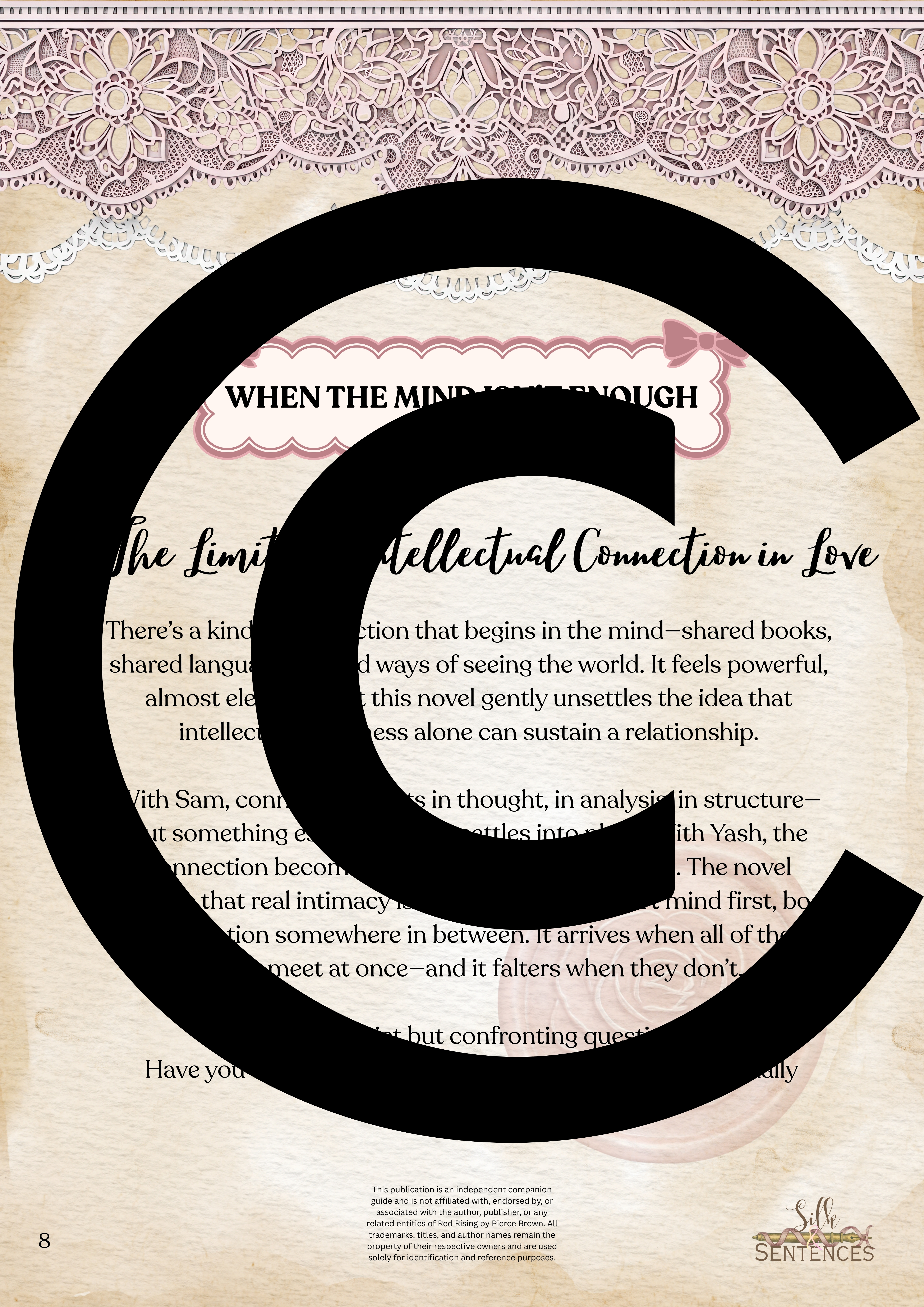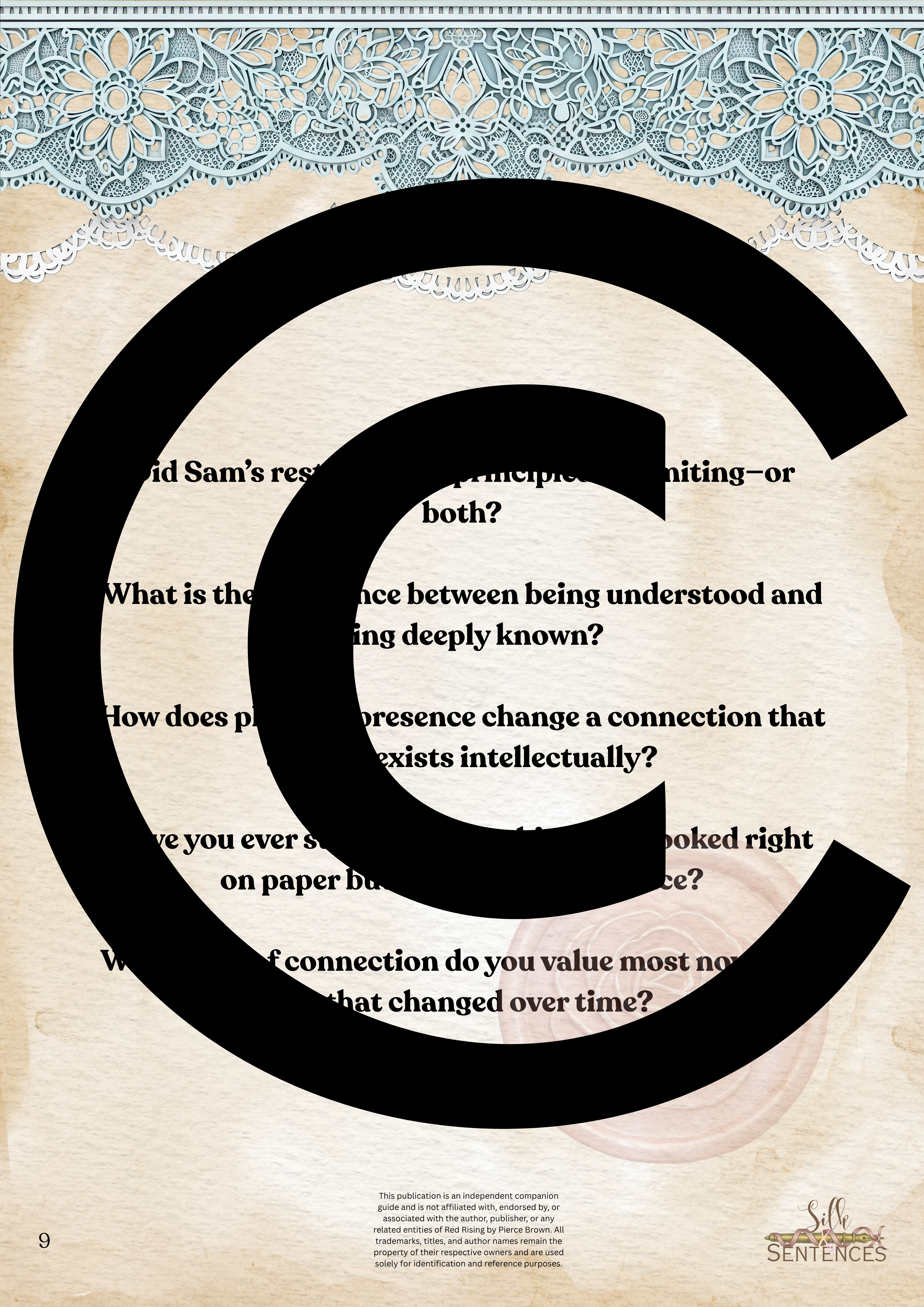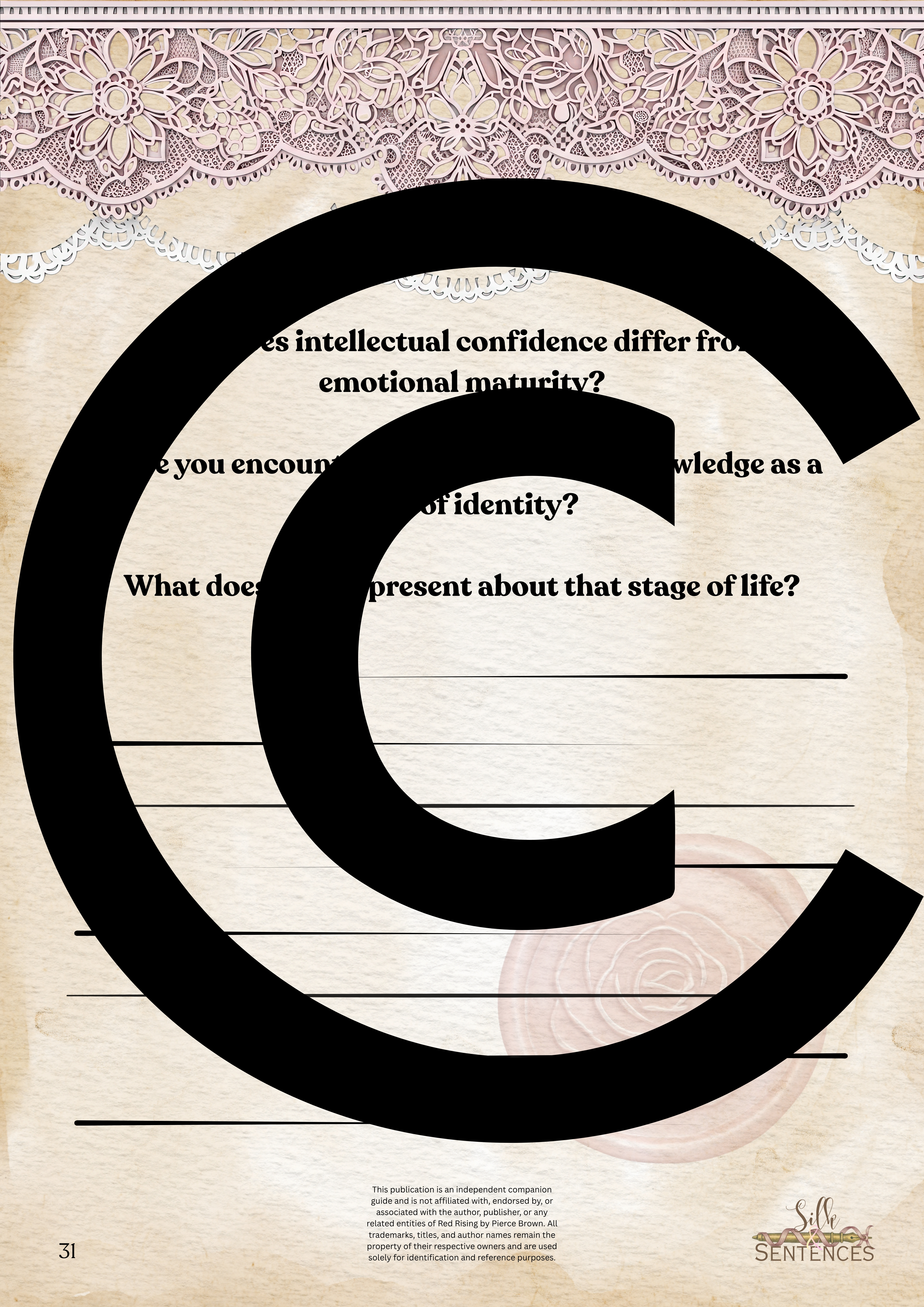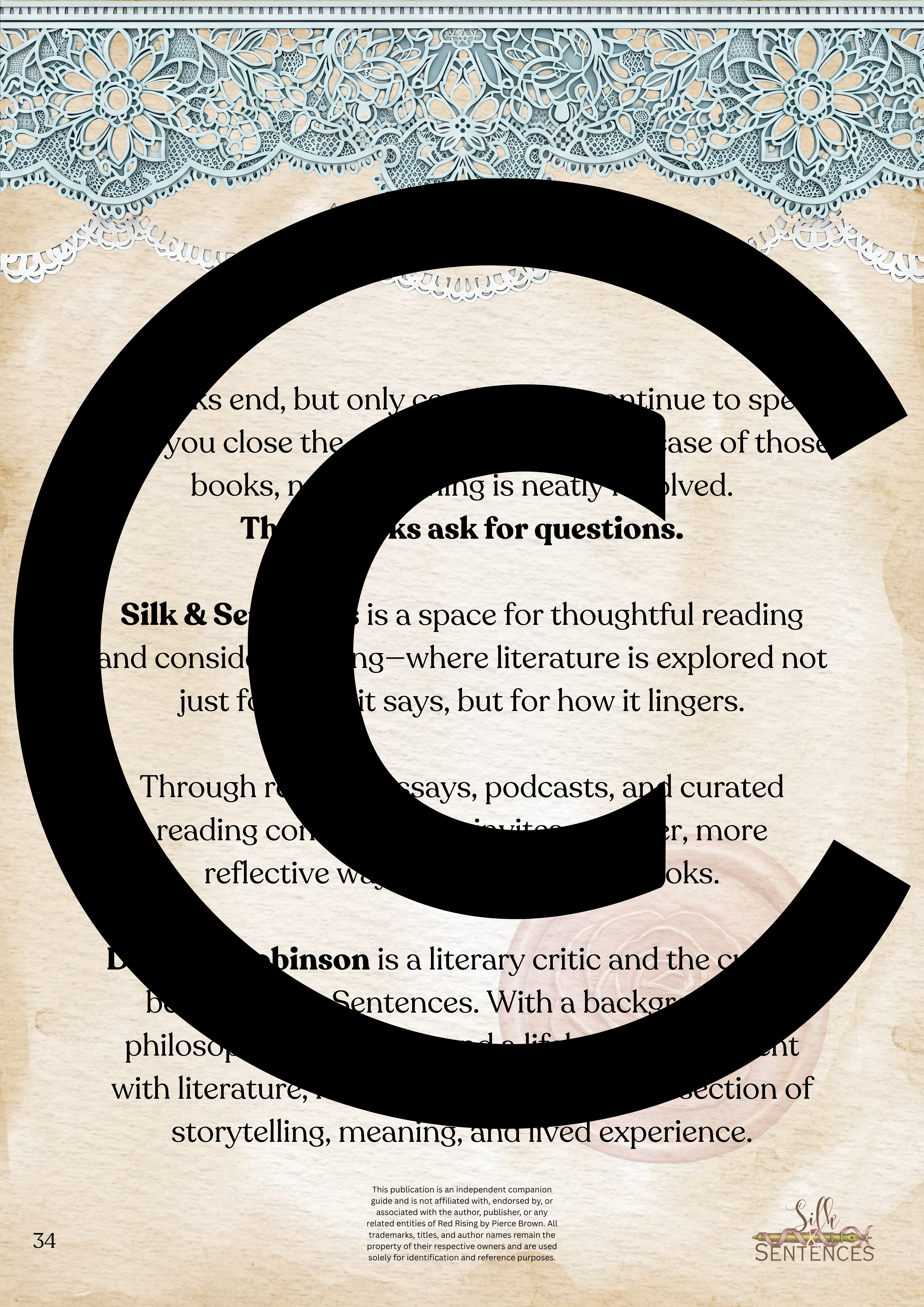 Available for individual download, this beautifully designed and paintakingly developed reading companion exists primarily to support you through reading it's corresponding book. With a plethora of reflection questions, adequate space for journalling and in-depth insights into key themes and characters, you will never read the same way again.