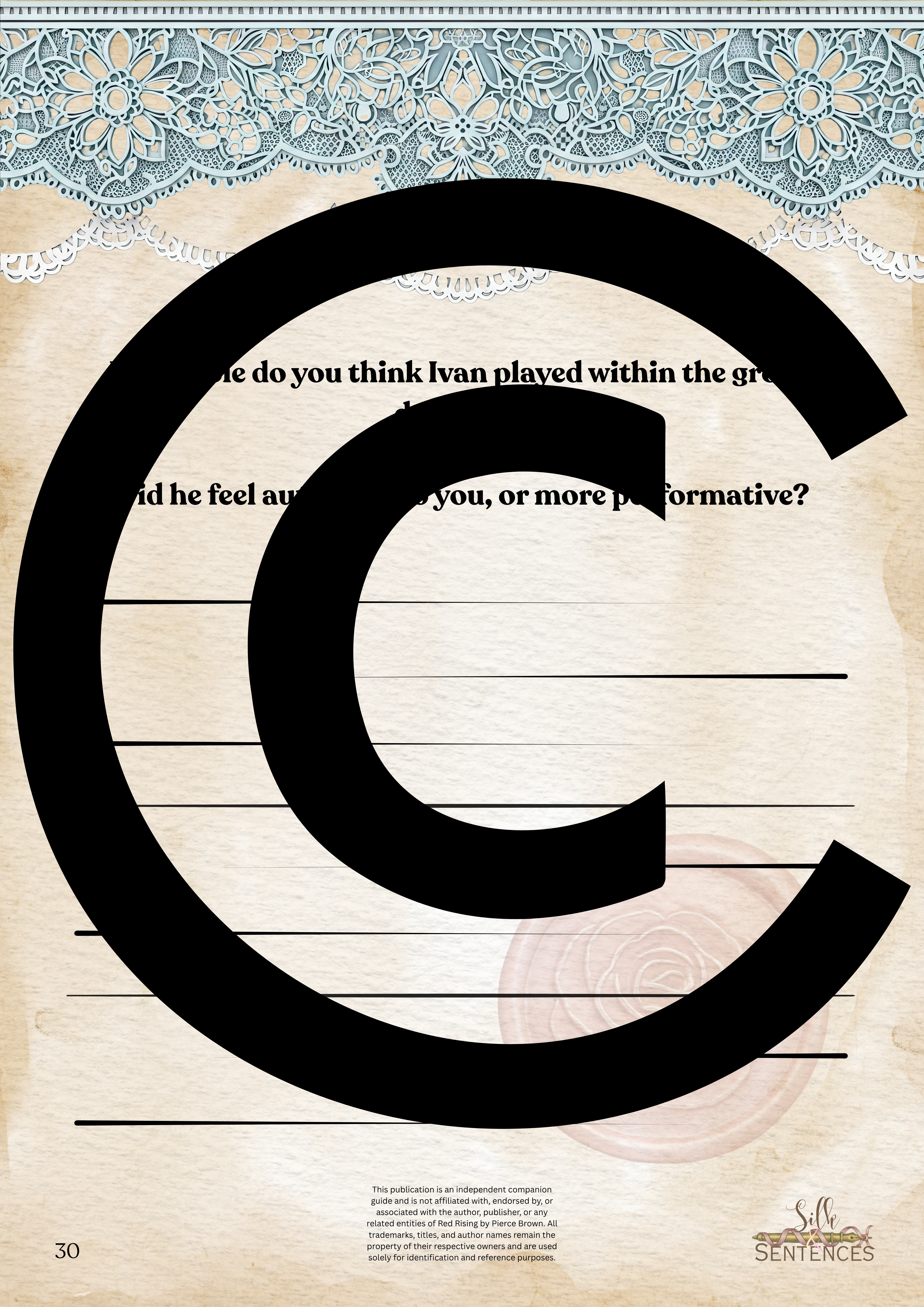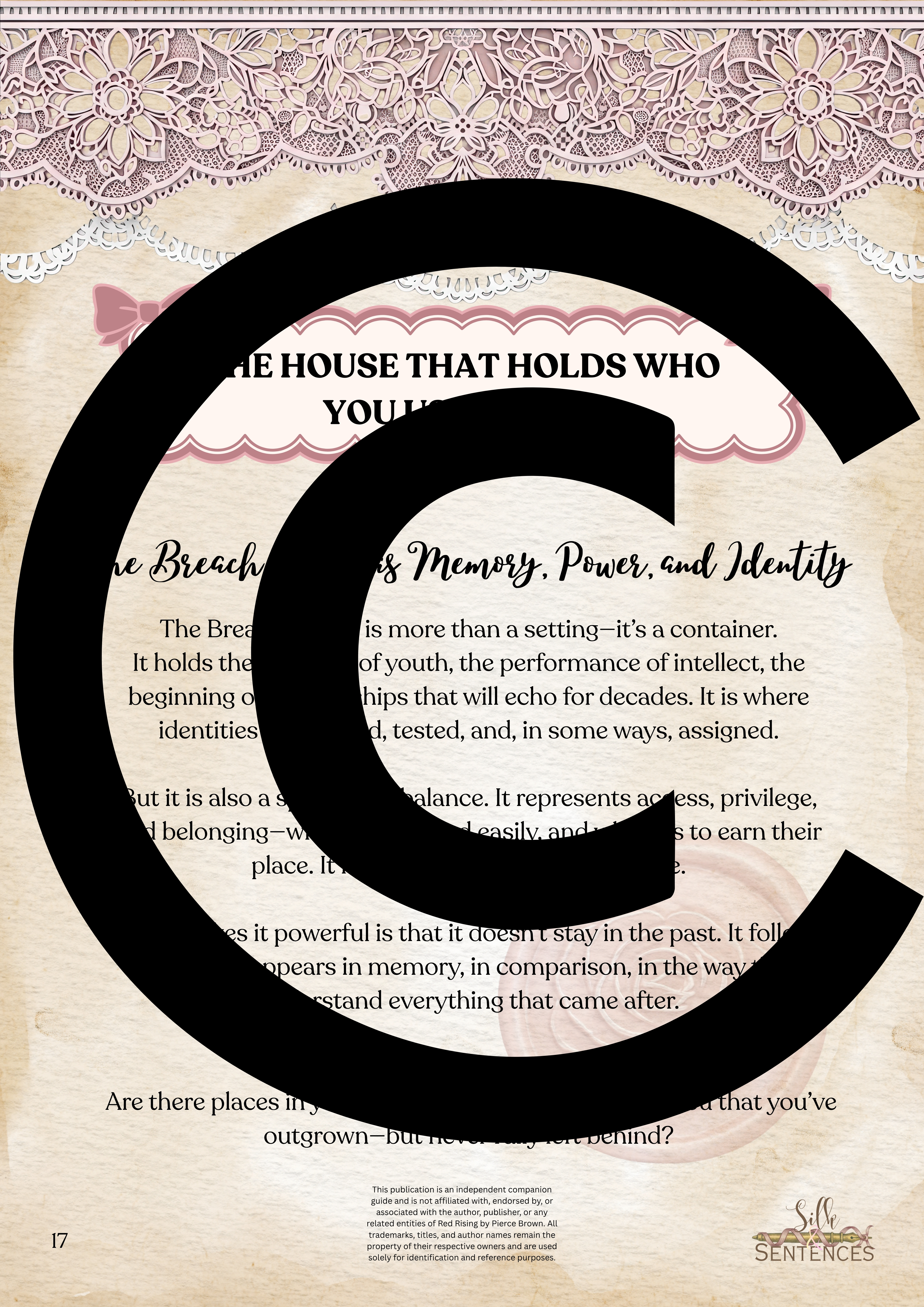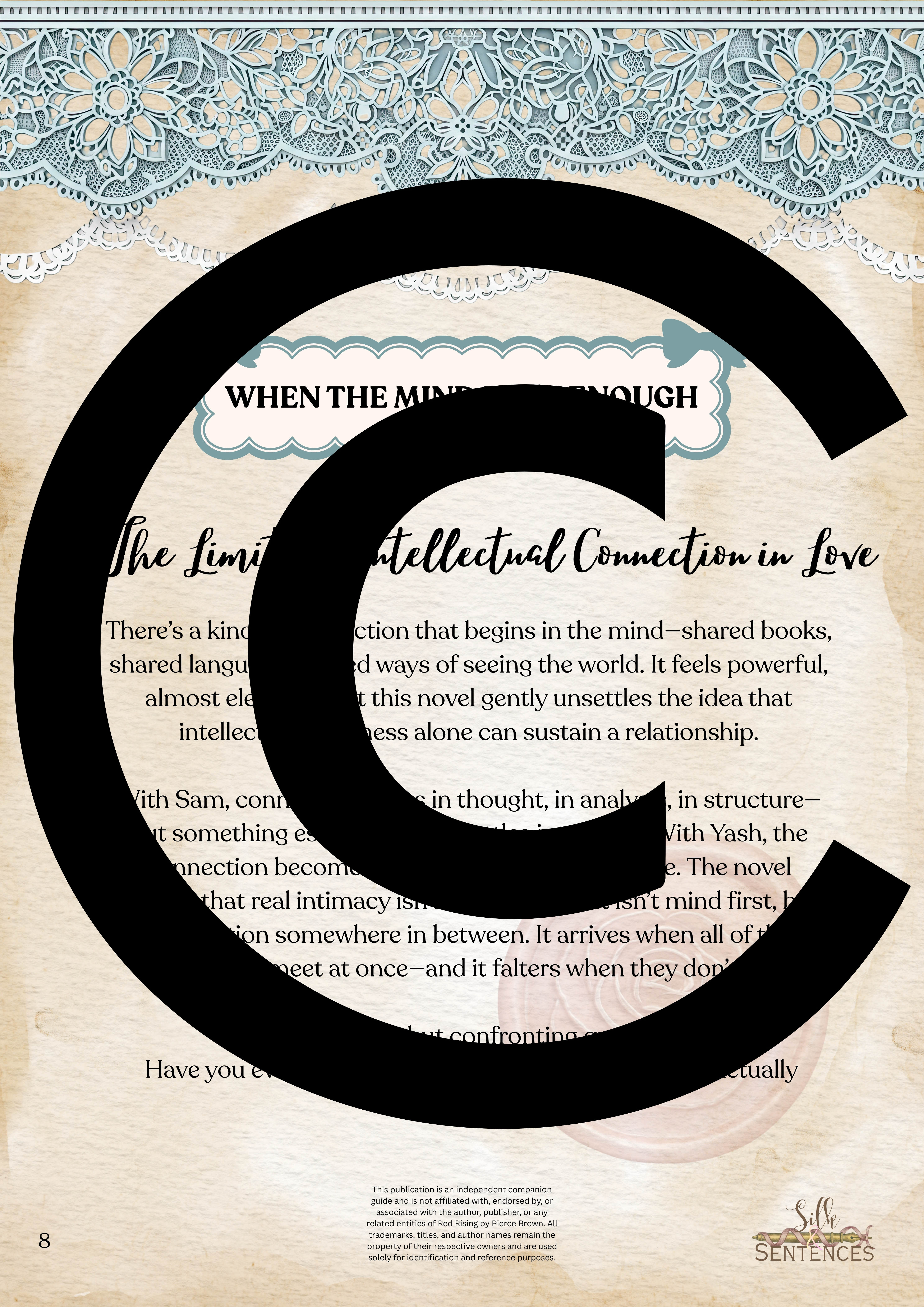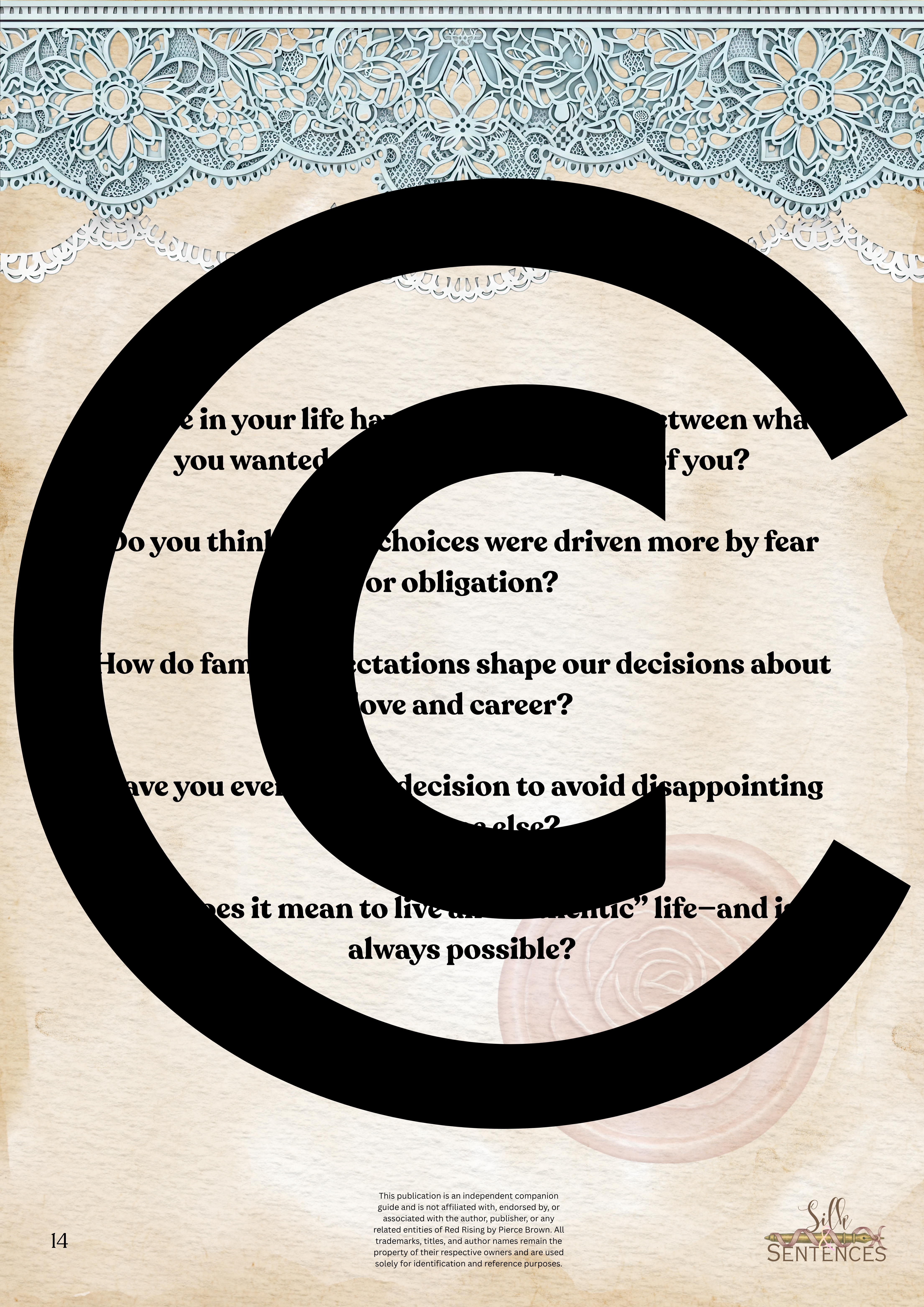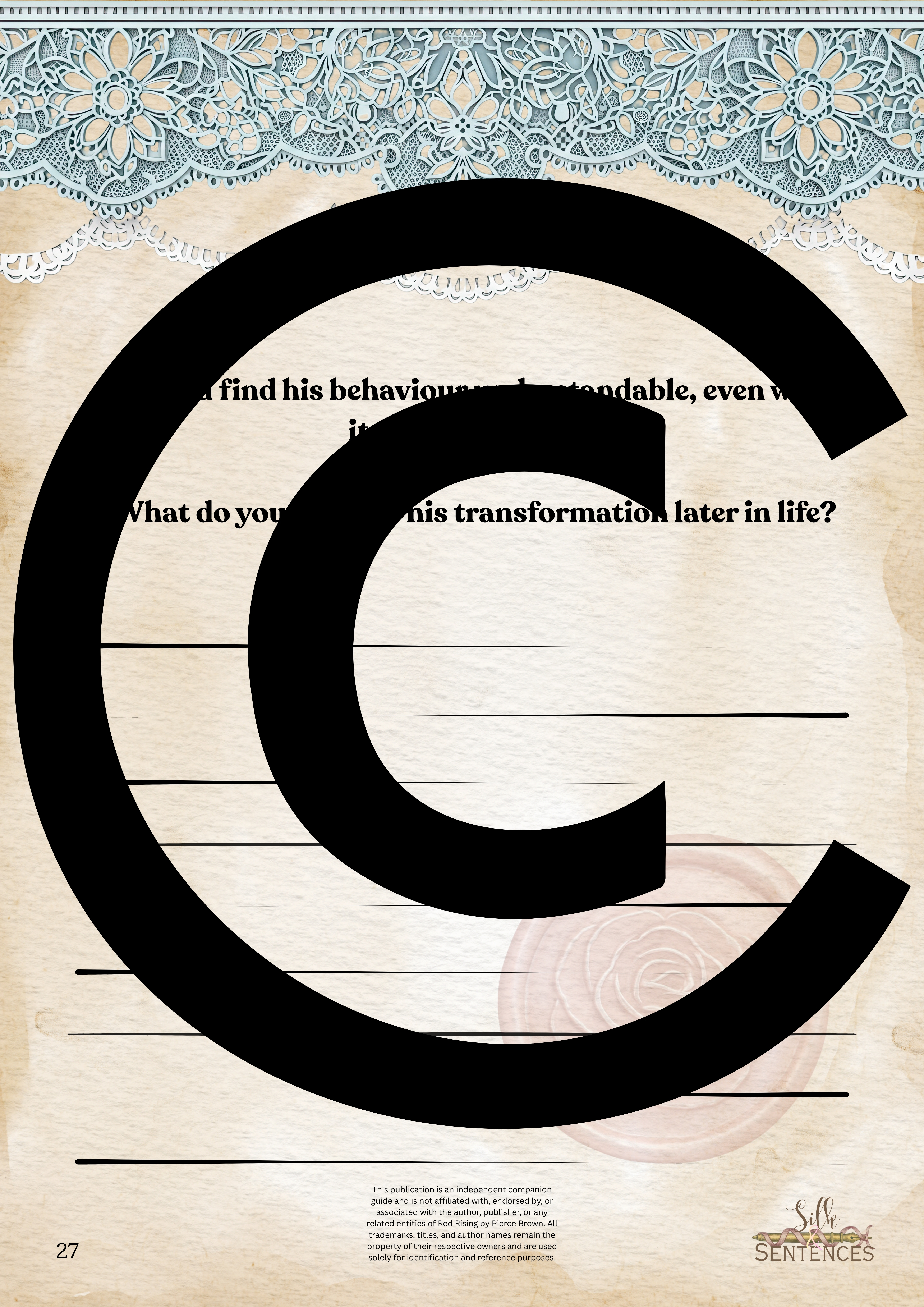 Available for individual download, this beautifully designed and paintakingly developed reading companion exists primarily to support you through reading it's corresponding book. With a plethora of reflection questions, adequate space for journalling and in-depth insights into key themes and characters, you will never read the same way again.