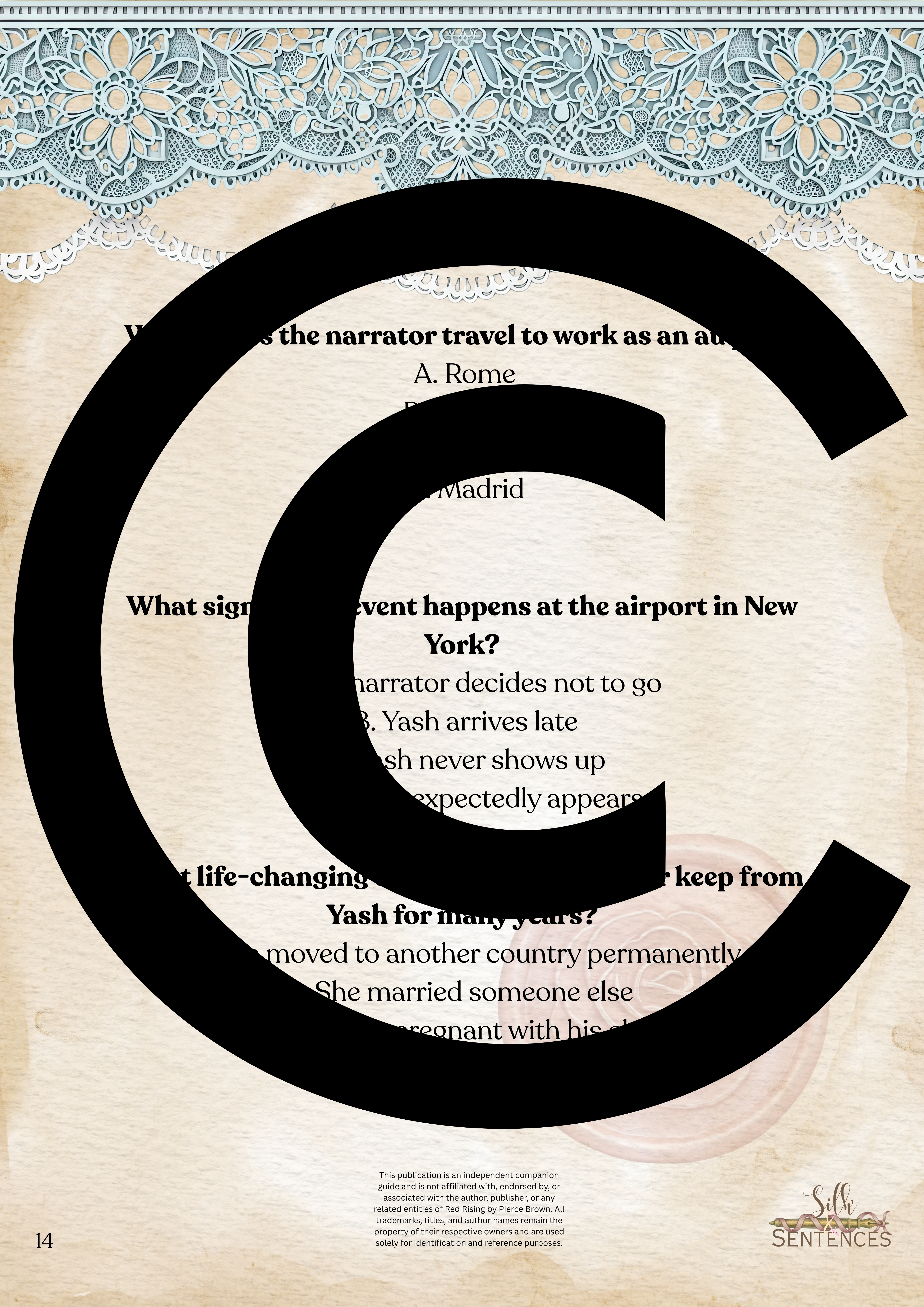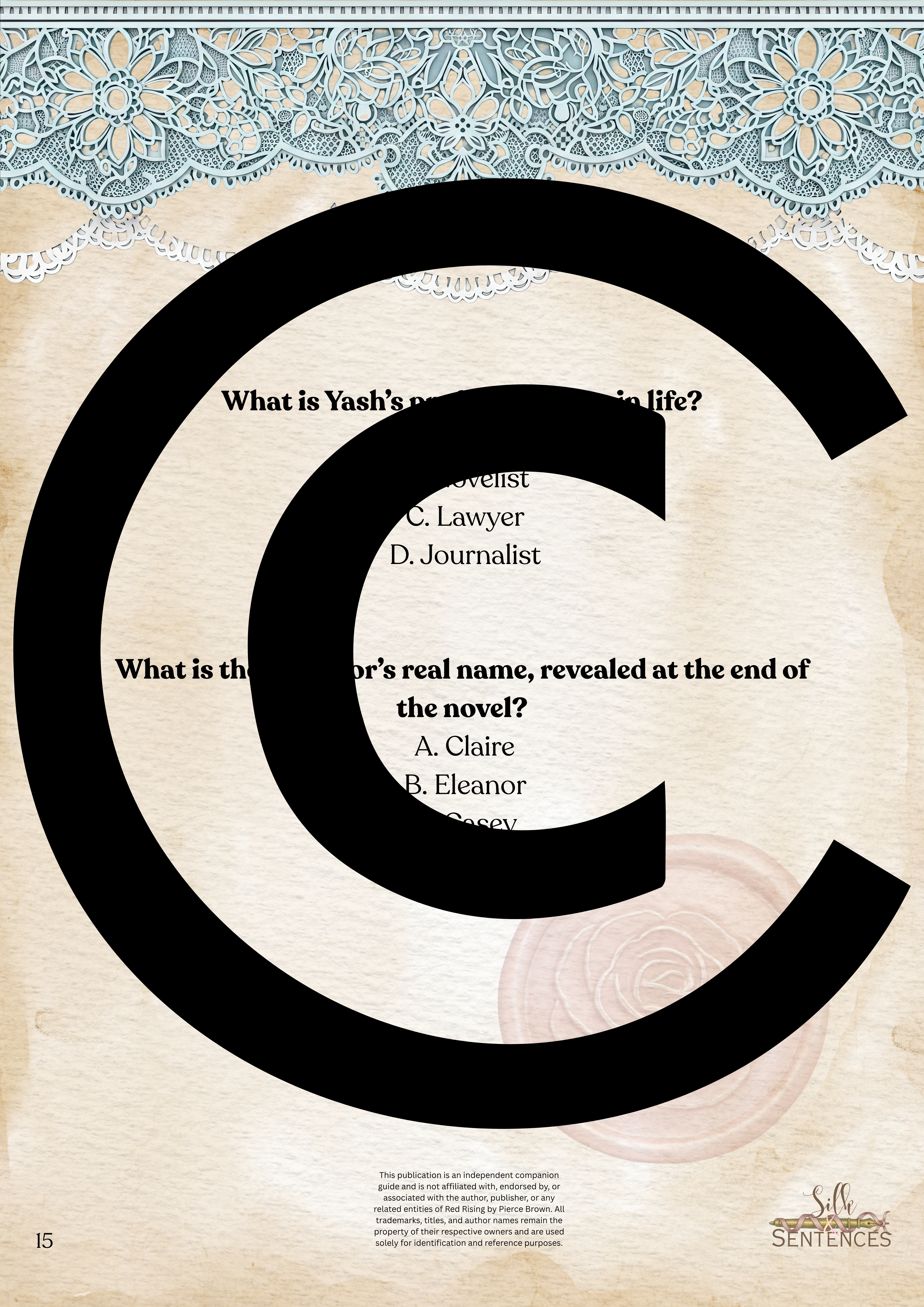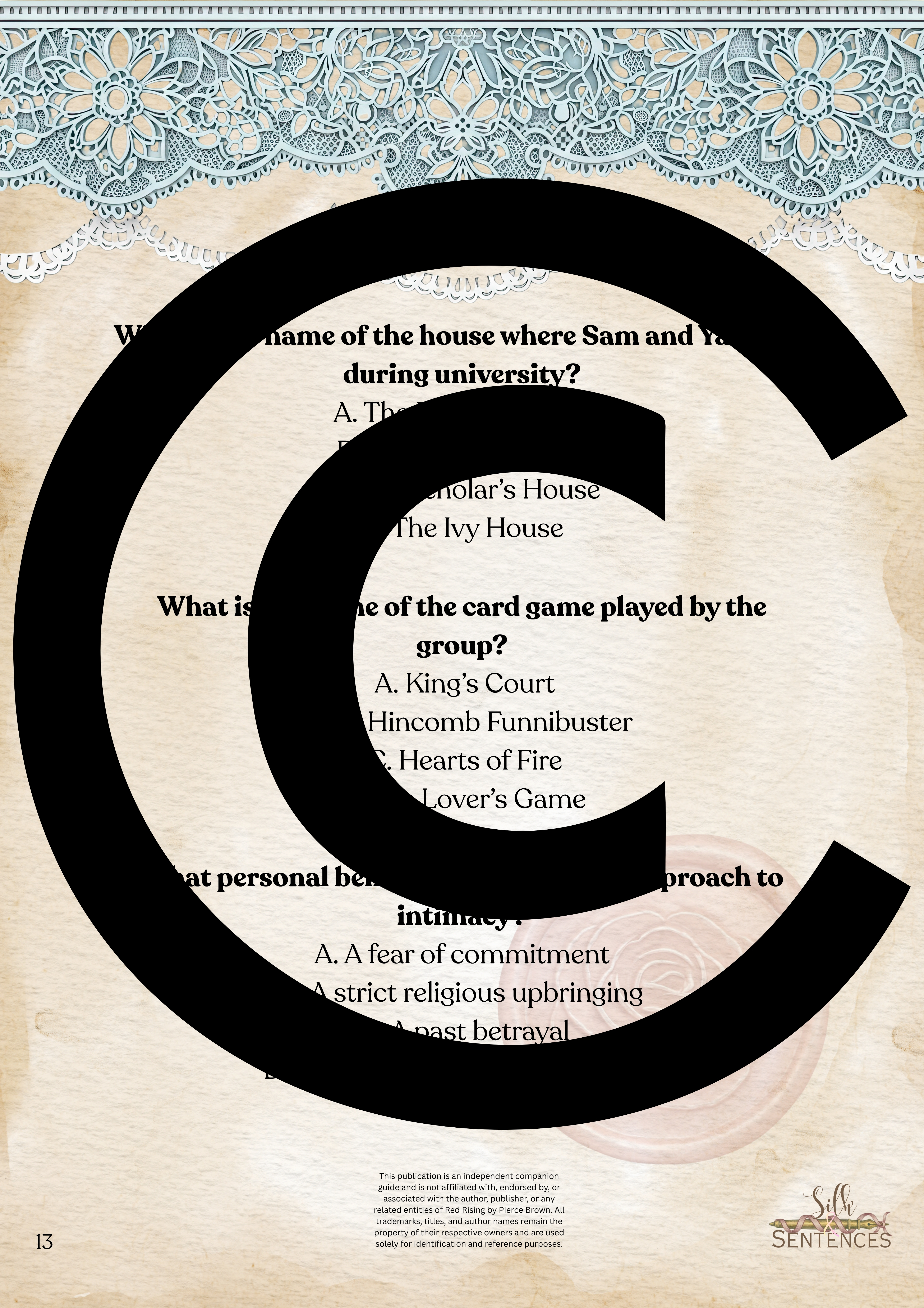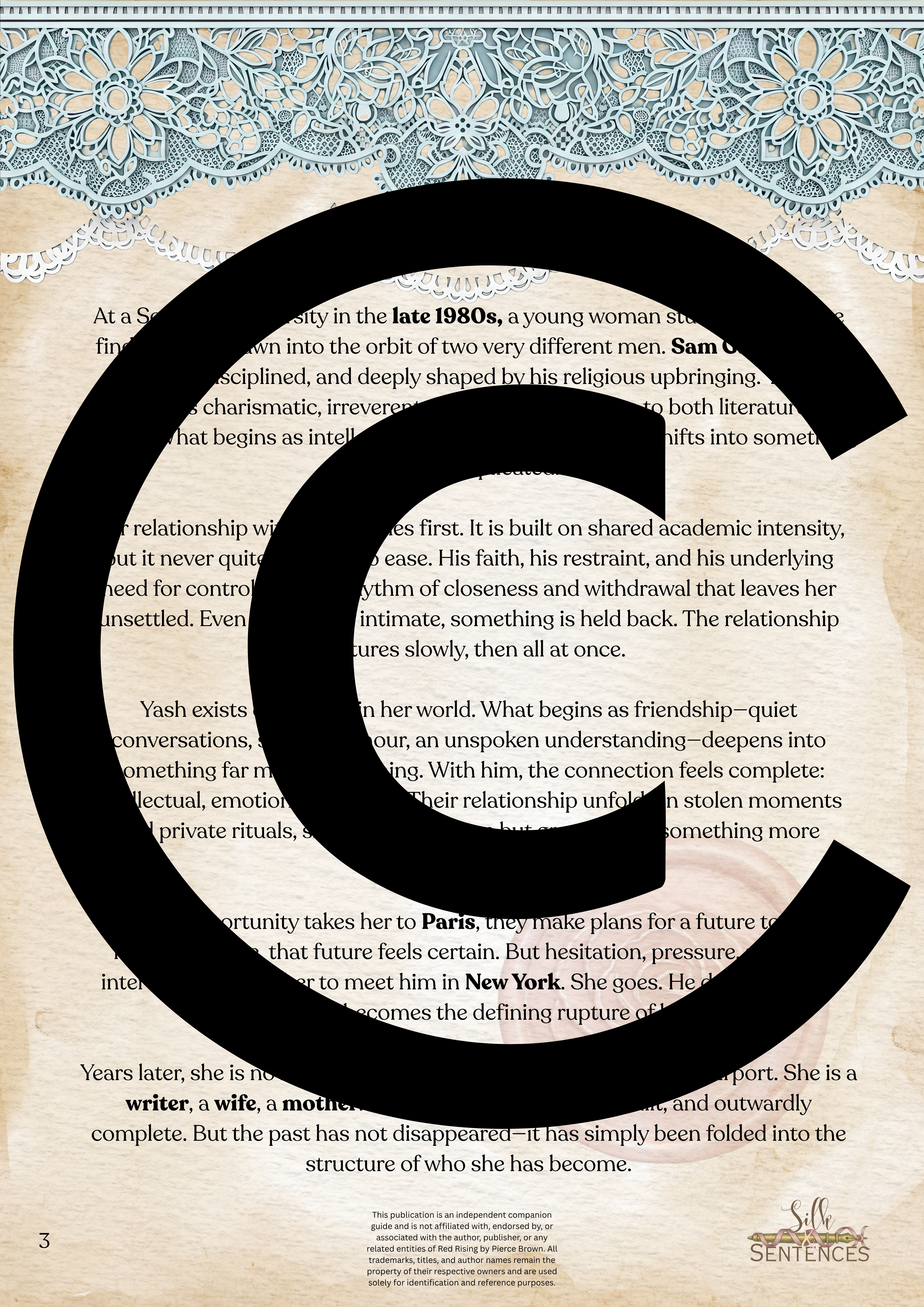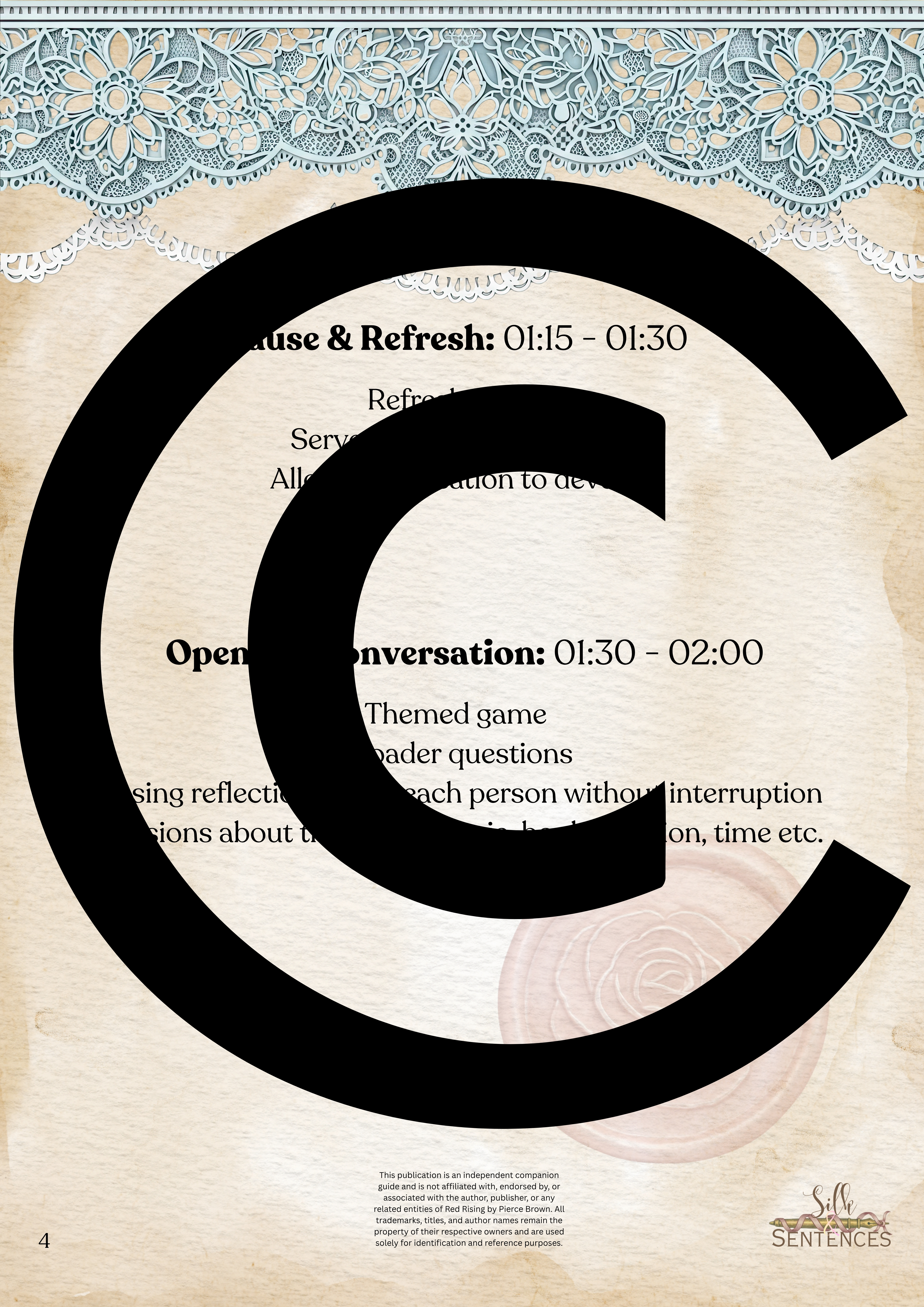 This is an indispensable addition to any Book Club event. Filled with insightful discussion questions, intriguing insights into plot development, emerging themes and character structure, there will be multiple options and avenues to enhance discussion and grow together through the immersion into the accompanying book. Available in conjunction with The Complete Collection, or the Gathering Edition.